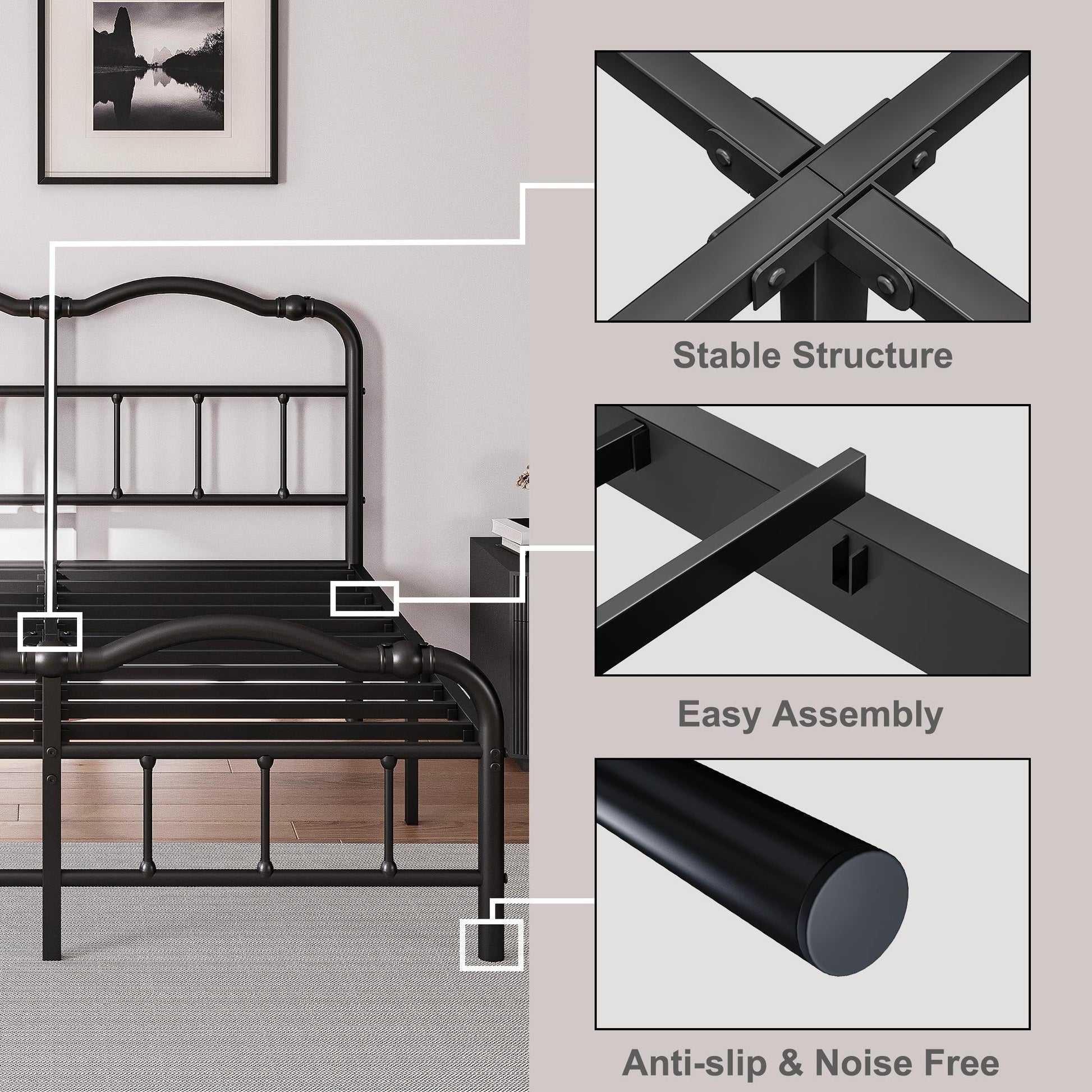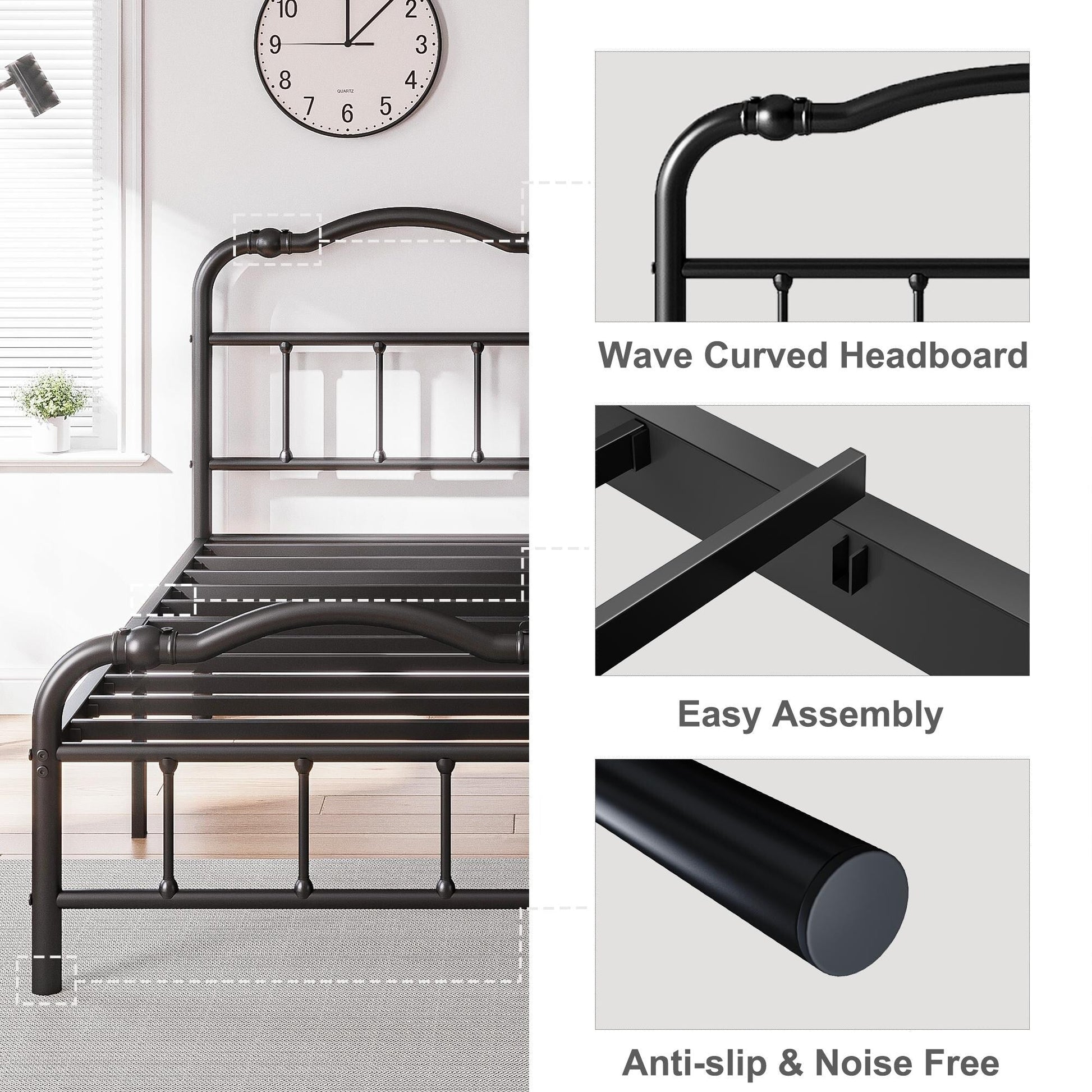 - High Weight Capacity: Capable of supporting 1500 pounds (single bed) or 2500 pounds (double bed), without any squeaking, ensuring you can sleep peacefully.