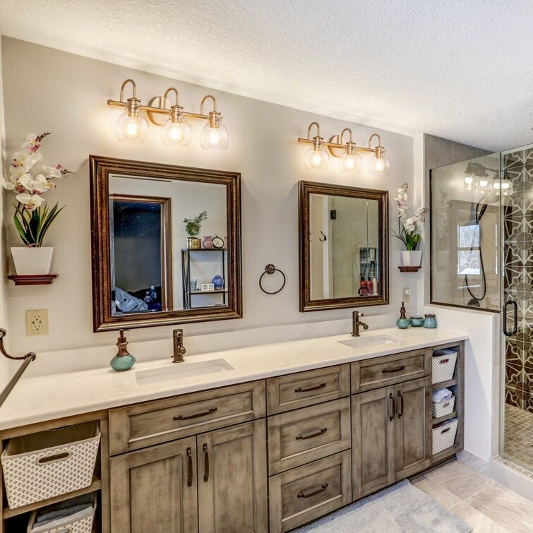 2/3 Light Bathroom Vanity Light Wall Sconce with Glass Shade