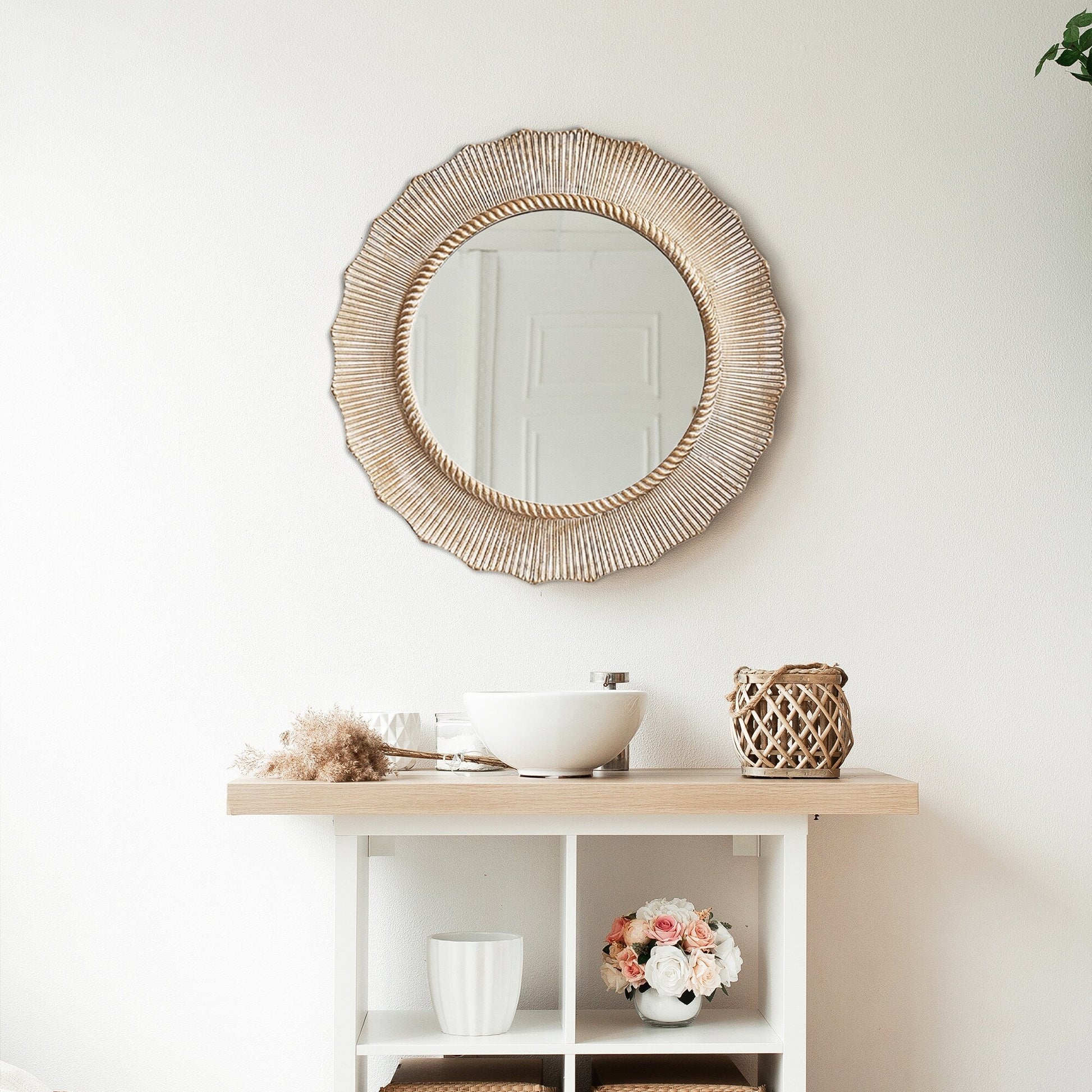 - Special Design: Add a note of rustic refinement to your living space with this wall mirror, made by artisans of wood, this mirror features simple round frame and wood wash finish, place it over a sink in a bath area for warmth and a rustic touch.