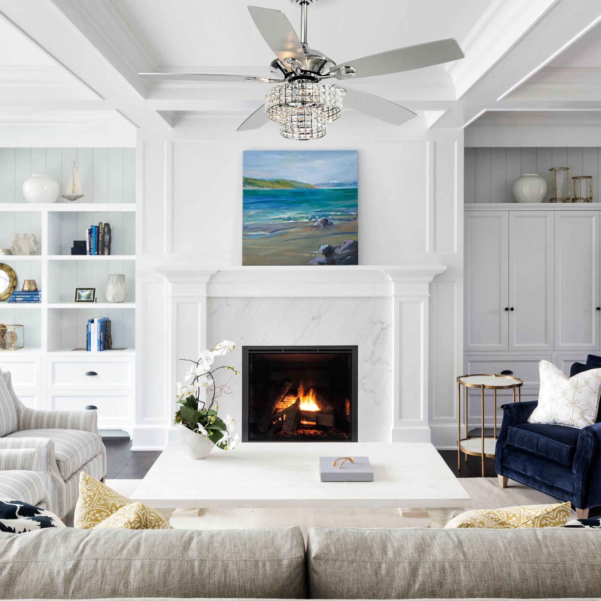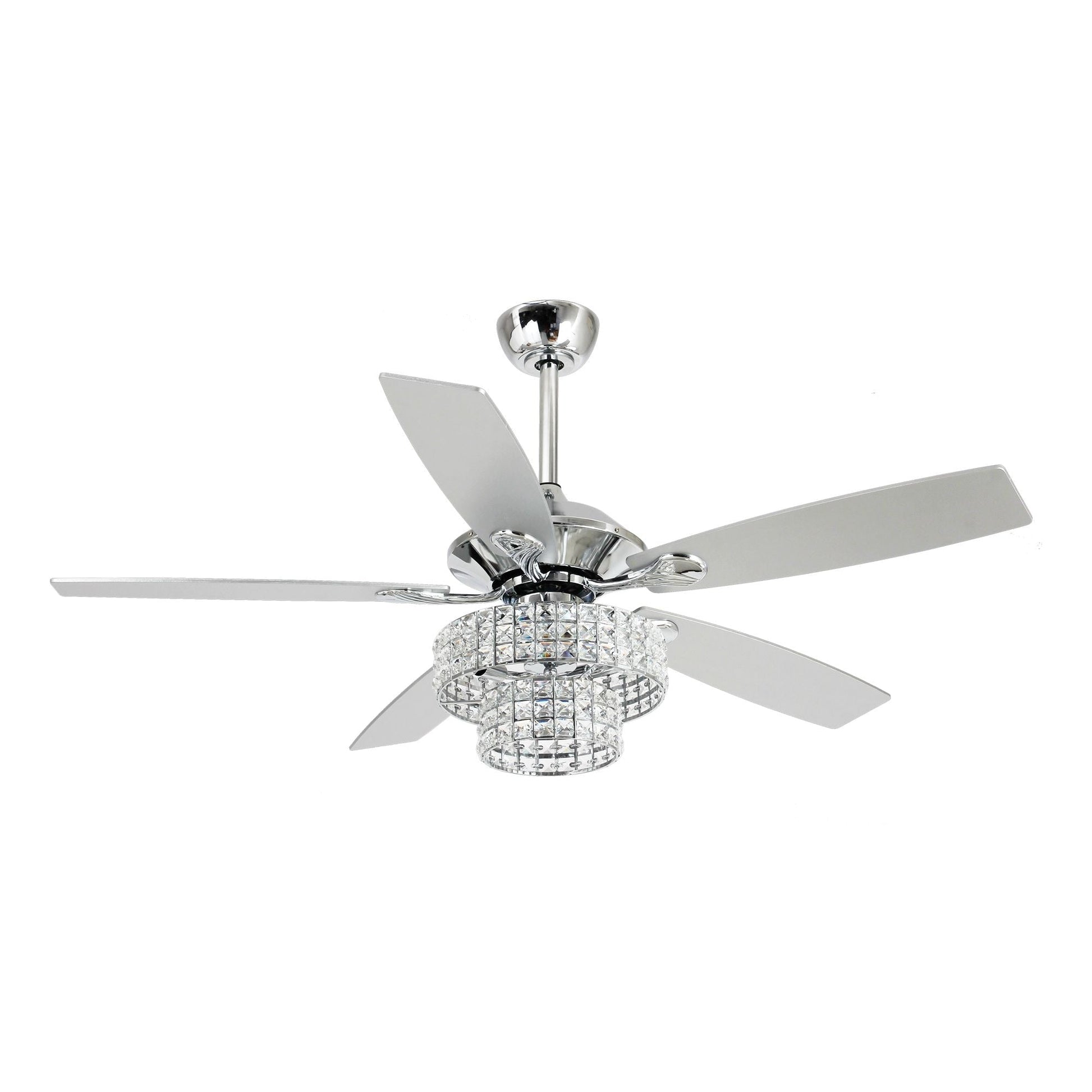 52-inch Chrome Wooden 5-blade Modern Crystal Ceiling Fan with Remote