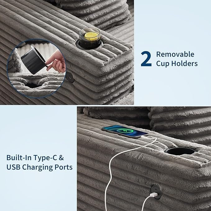 [Spacious Comfort for Lounging]Enjoy exceptional relaxation with this oversized chaise lounge chair, featuring a generous 54-inch width and deep 47-inch seating area. Perfect for reading, napping, or movie nights, it provides ample room for you and your loved ones to lounge comfortably. Its expansive design ensures a premium seating experience, making it an ideal addition to living rooms, bedrooms, or entertainment spaces.[Durable Premium Corduroy Upholstery]Crafted with breathable, high-quality corduroy fabric, this sofa bed combines luxury and durability. The soft texture adds a cozy feel, while the high-density foam and pocket springs inside maintain the chair¡¯s shape and offer plush support. Whether you¡¯re gaming, relaxing, or resting, the premium upholstery delivers lasting comfort and style.[Ergonomic Full-Body Support]Designed with your comfort in mind, the oversized chaise lounge features an ergonomic deep seat that supports your entire body. This promotes relaxation for reading, meditation, or unwinding after a busy day. The chair¡¯s structure encourages healthy posture and reduces fatigue, helping you feel refreshed and cozy during extended use.[Practical Built-In Convenience]Stay connected effortlessly with the built-in charging ports integrated into the sleeper chair, allowing you to power your devices while reclining. Removable cup holders add convenience, letting you enjoy your favorite beverages without needing extra furniture. These thoughtful features enhance your leisure experience, perfect for multitasking during reading or watching TV.[Simple Assembly & Stylish Modern Design]This modern chaise lounge chair offers easy setup with a straightforward assembly process, so you can start relaxing quickly. Its sleek, contemporary design complements a variety of interior styles, adding sophistication and comfort to any space. Whether used in a living room, home office, or bedroom, it¡¯s a stylish and practical seating solution