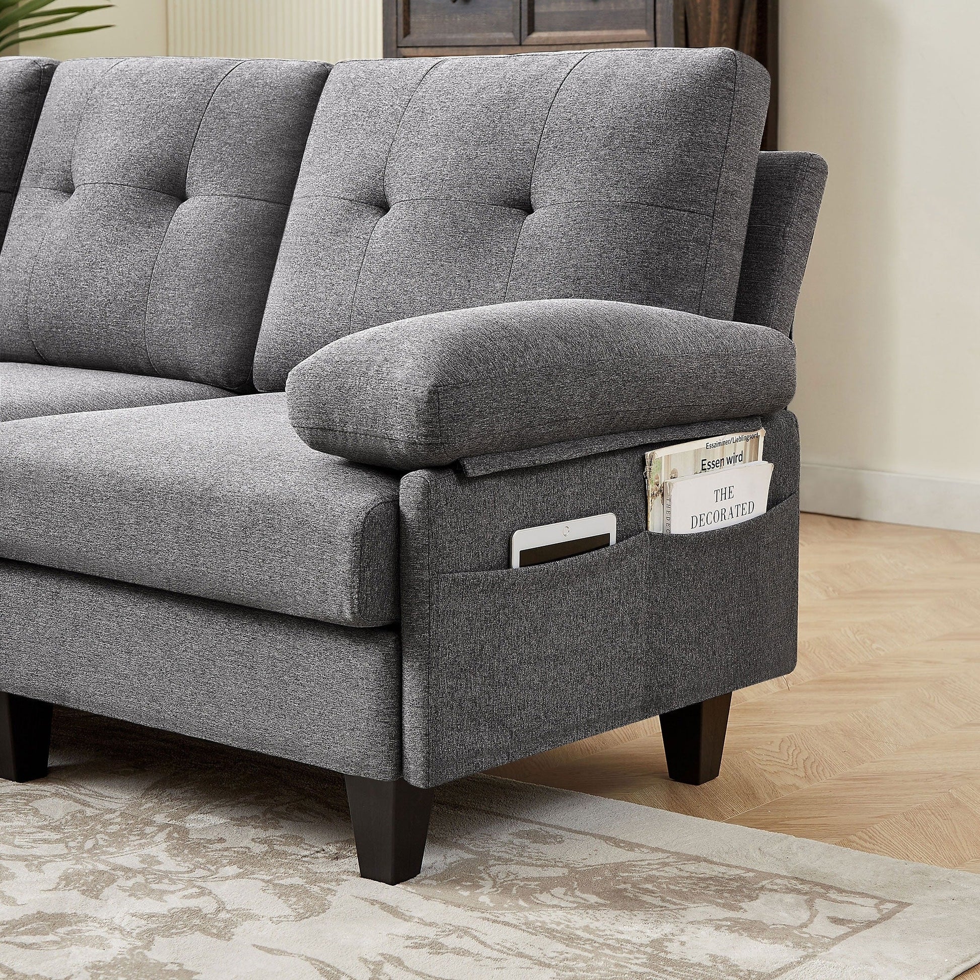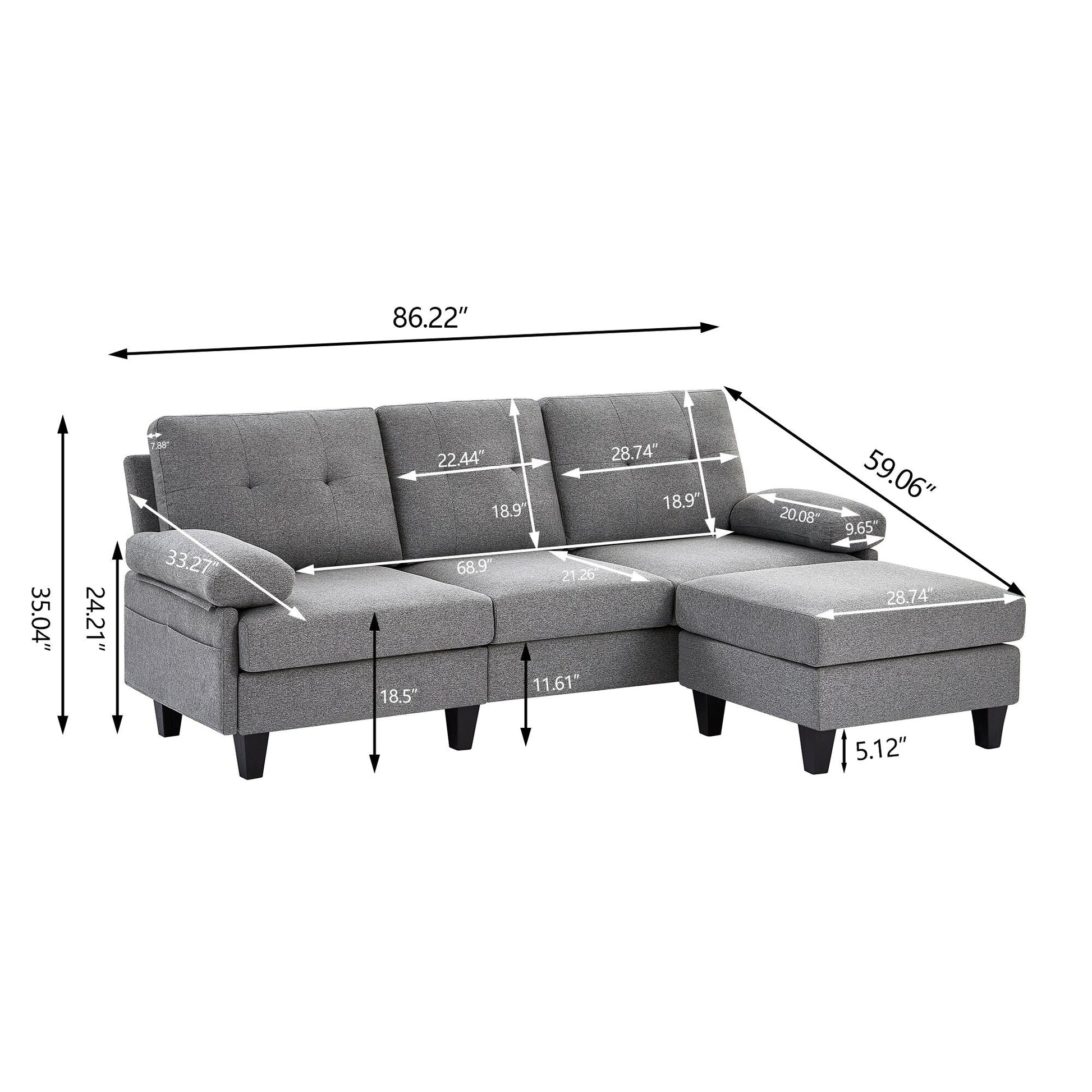 86.22 L Shaped Sectional Sofa with Side Storage Pockets