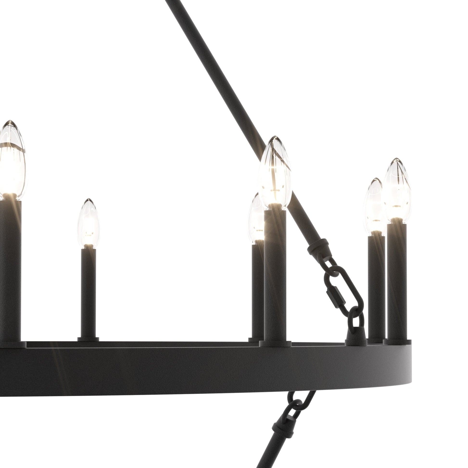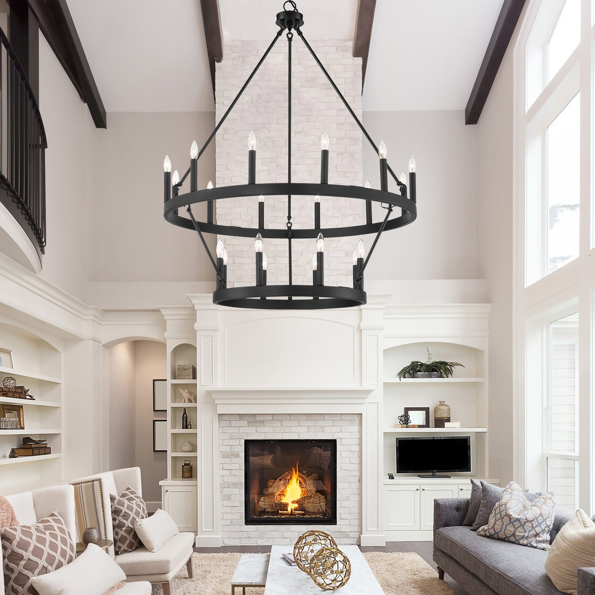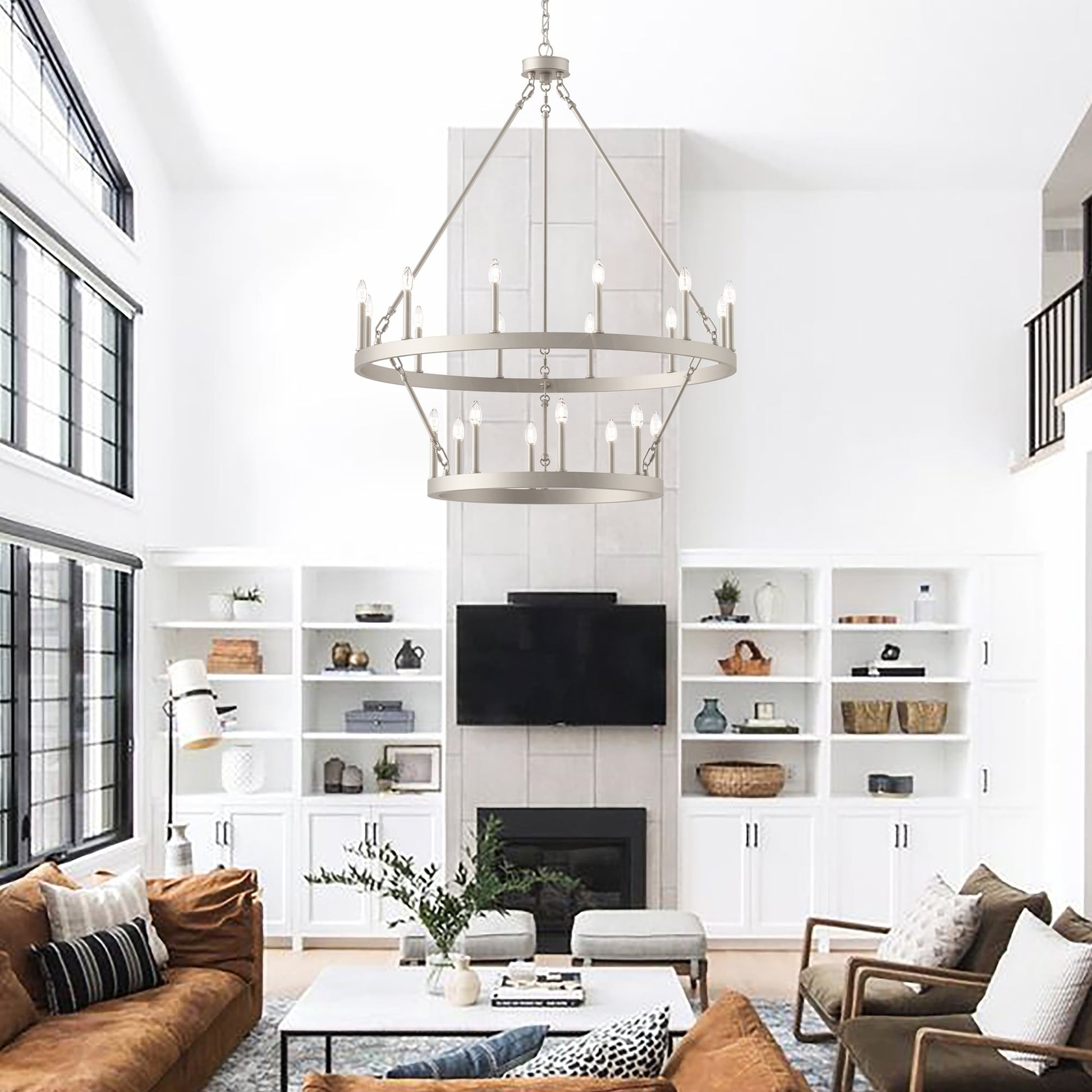 Brighten up your living space with the Farmhouse Rustic Large Wagon Wheel Chandelier, made of steel and available in a variety of colors, this chandelier is durable and adds charm to a variety of styles. With 2-tier wagon wheel and twenty candlestick, which is perfect for fully illuminating a large space like living room, dining room, and large two story foyer/ entryway. Customize your space with candle-base bulbs for a vintage french country look or stick bulbs for a modern touch.