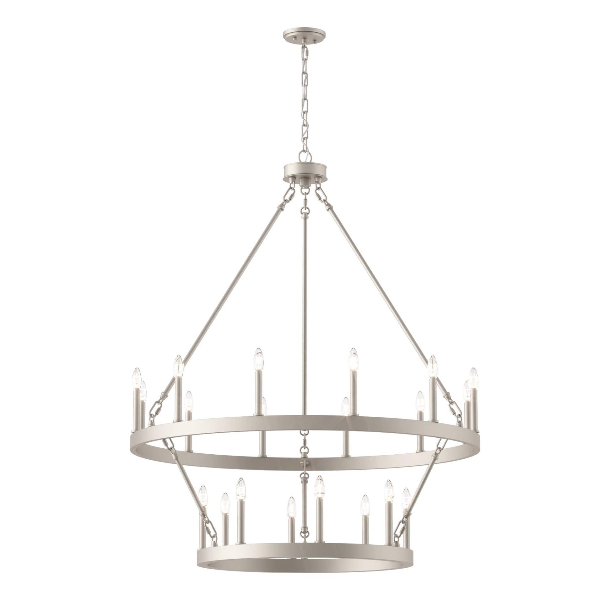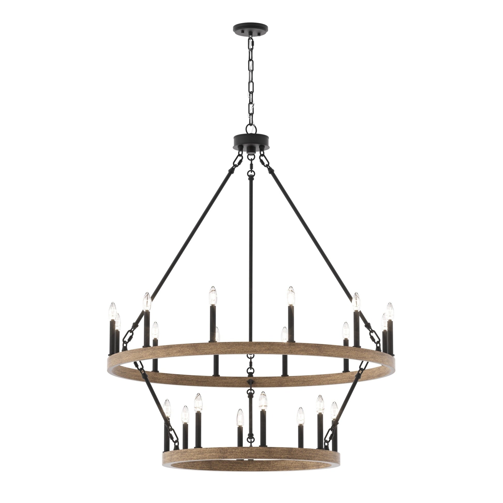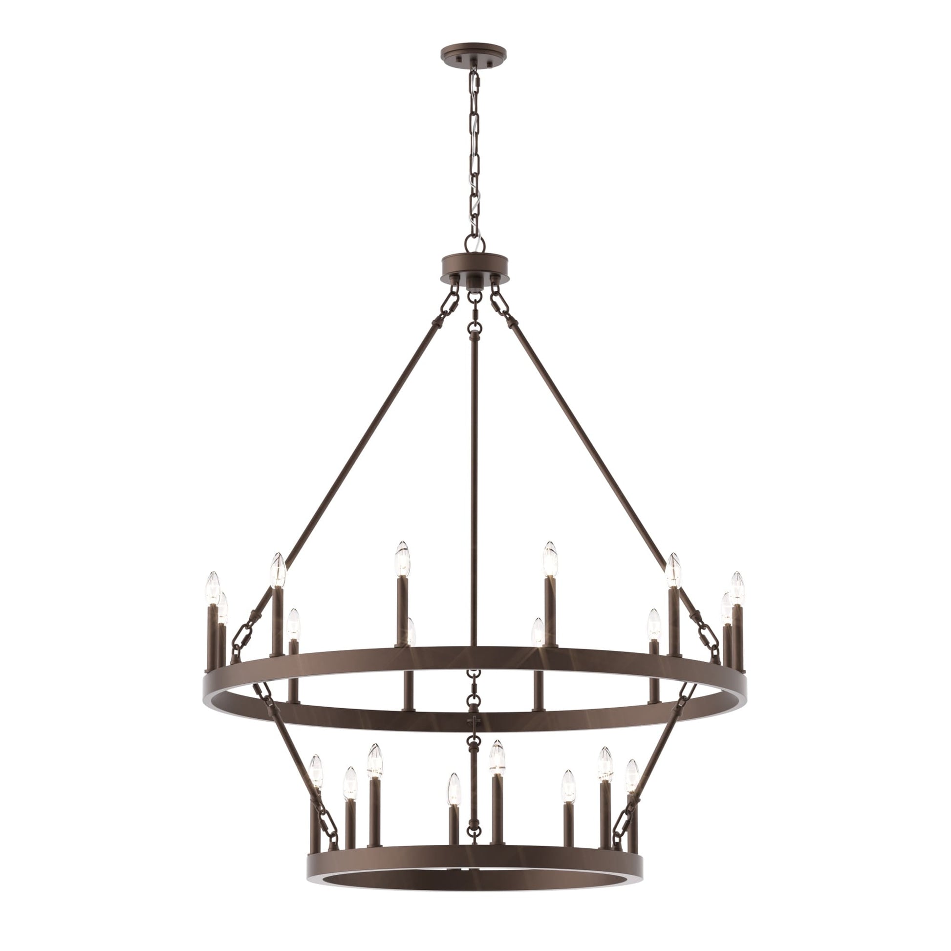 Brighten up your living space with the Farmhouse Rustic Large Wagon Wheel Chandelier, made of steel and available in a variety of colors, this chandelier is durable and adds charm to a variety of styles. With 2-tier wagon wheel and twenty candlestick, which is perfect for fully illuminating a large space like living room, dining room, and large two story foyer/ entryway. Customize your space with candle-base bulbs for a vintage french country look or stick bulbs for a modern touch.