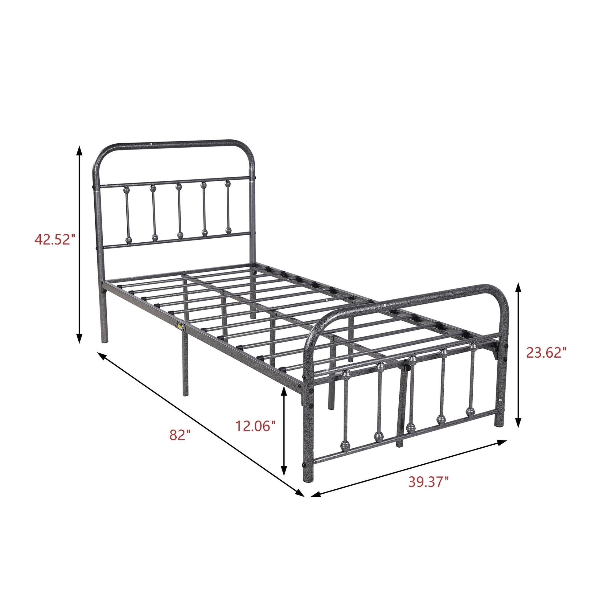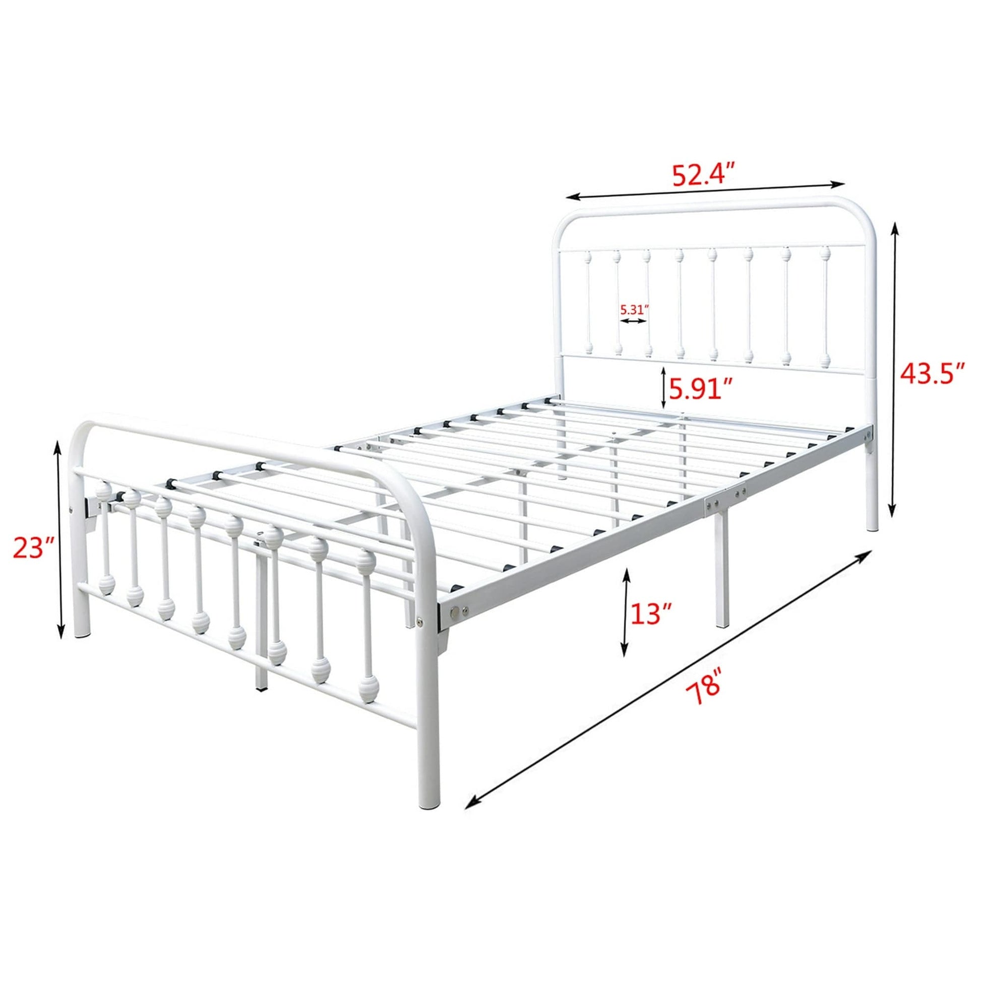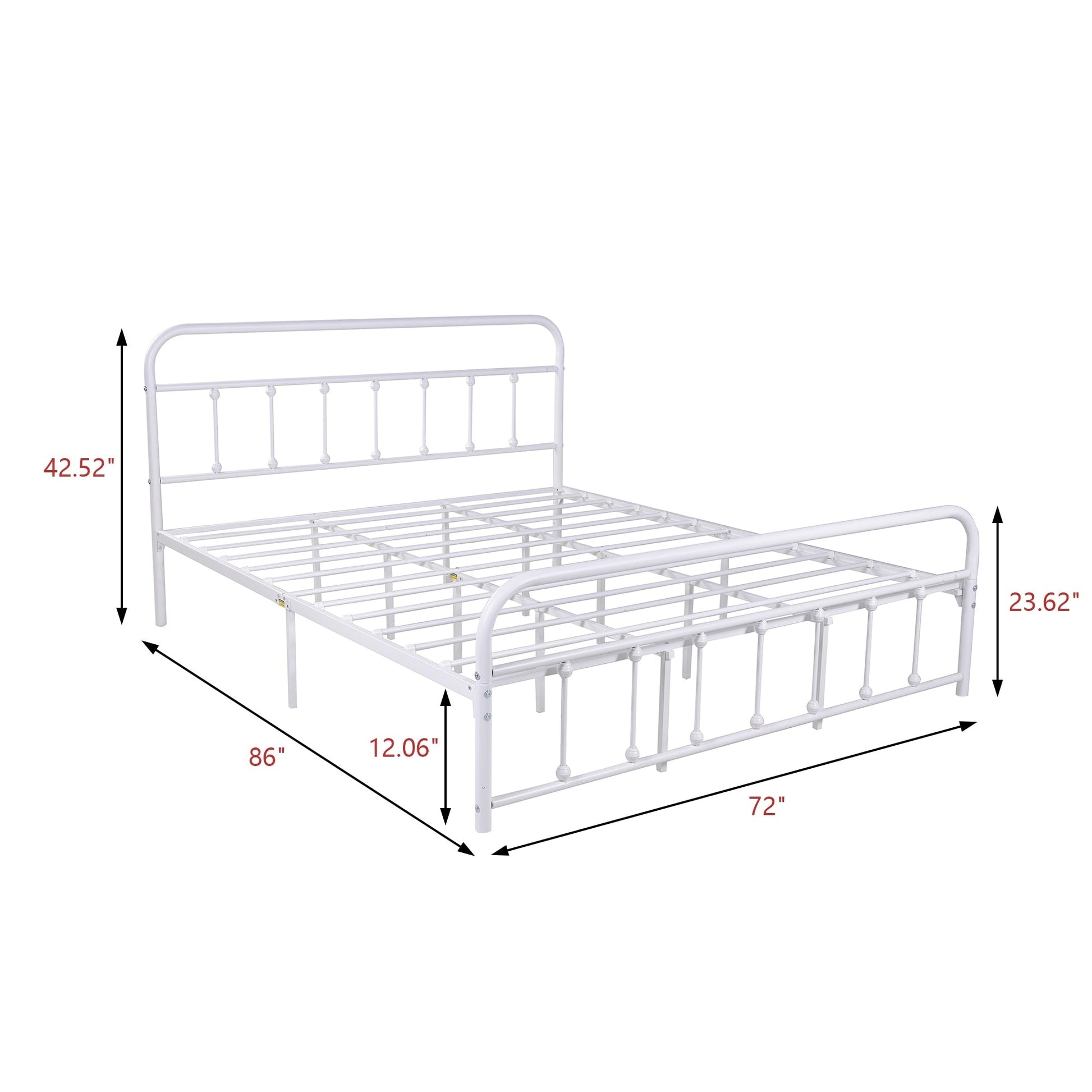 Upgrade your bedroom with the Alazyhome Simple Vintage Metal Platform Bed Frame. This vintage-style and simple-color bed frame easily blends with bold colors and accessories to give your room a refreshed look. Suitable for all ages, this bed frame eliminates the need for a box spring and is designed with durable metal slats that extend the life of your mattress, while the additional center leg provides ample support for a comfortable night's sleep. All necessary parts and tools are included in one box, allowing for easy assembly and disassembly. With 12 inches of storage space beneath the bed frame, it helps keep your room neat and tidy.