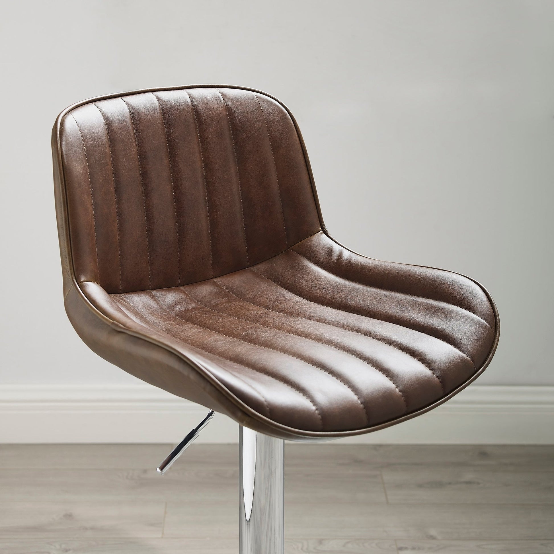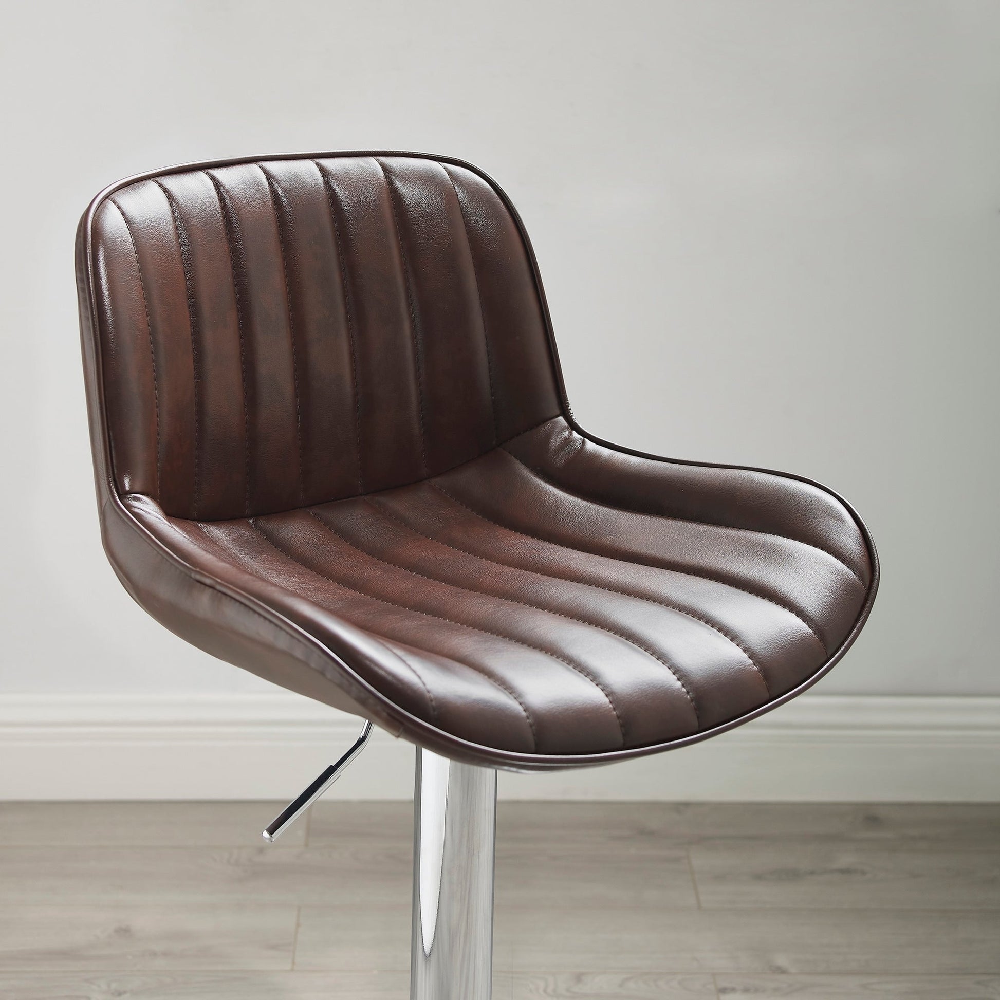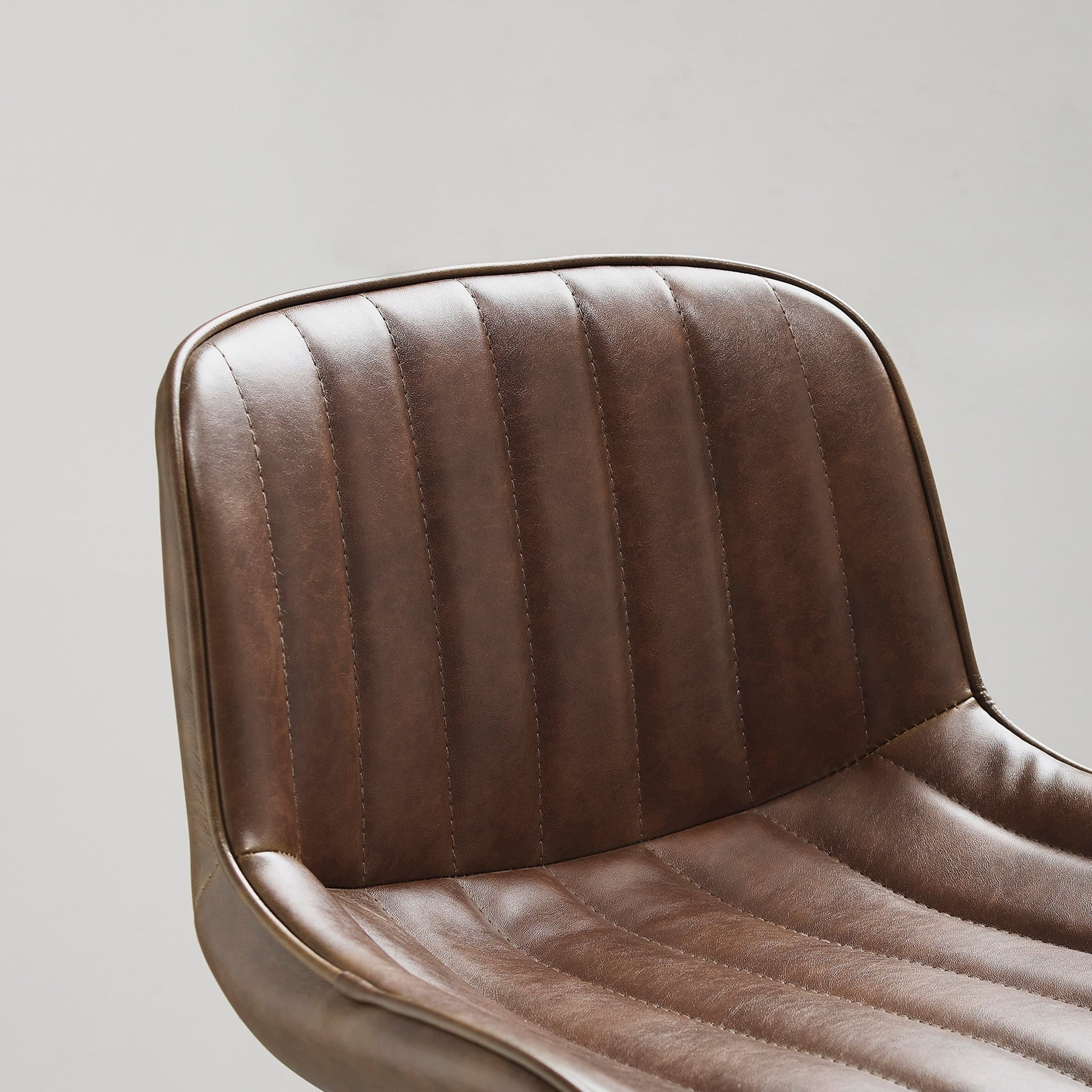 - Contoured faux leather seat with classic striated quilting
