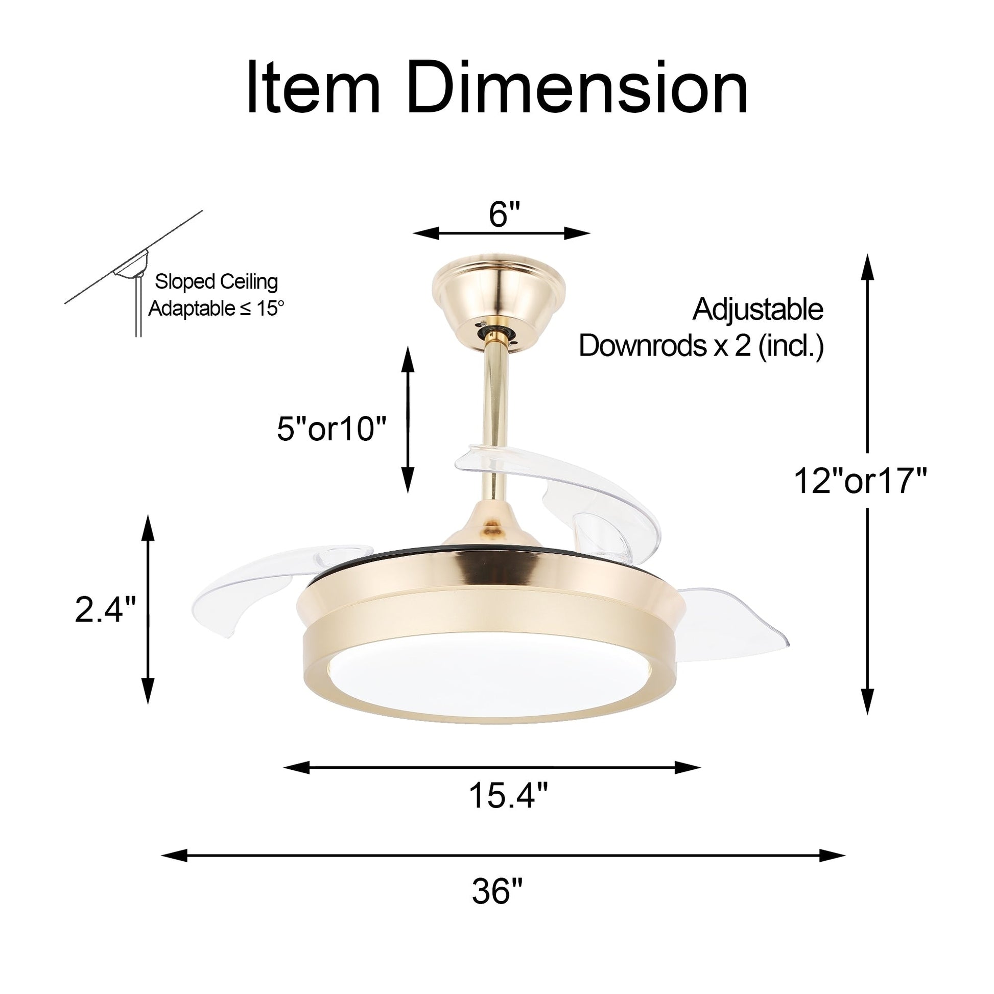 Bella Depot 36 Modern Retractable Ceiling Fan with Led Light, 6-Speed Reversible Blades with Remote