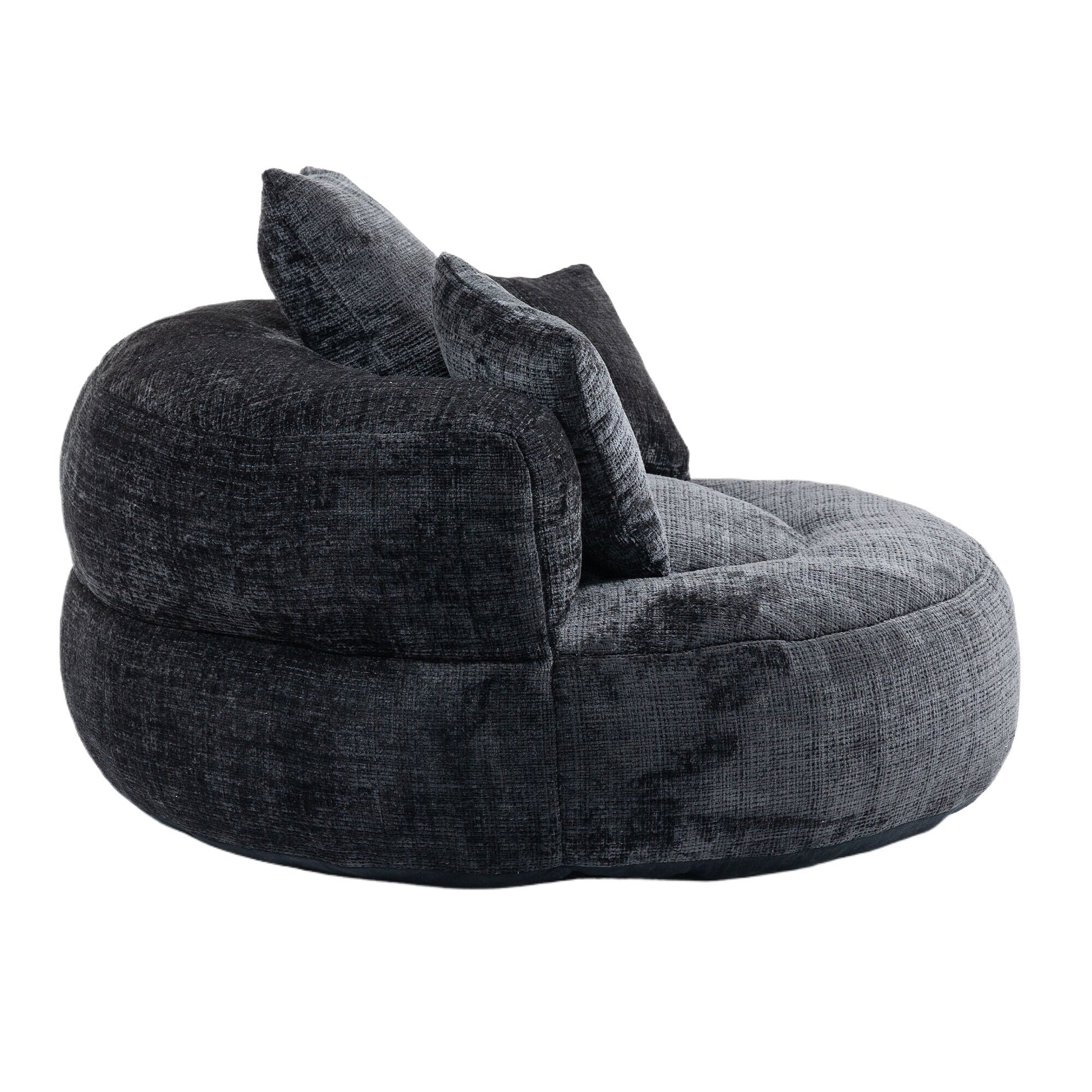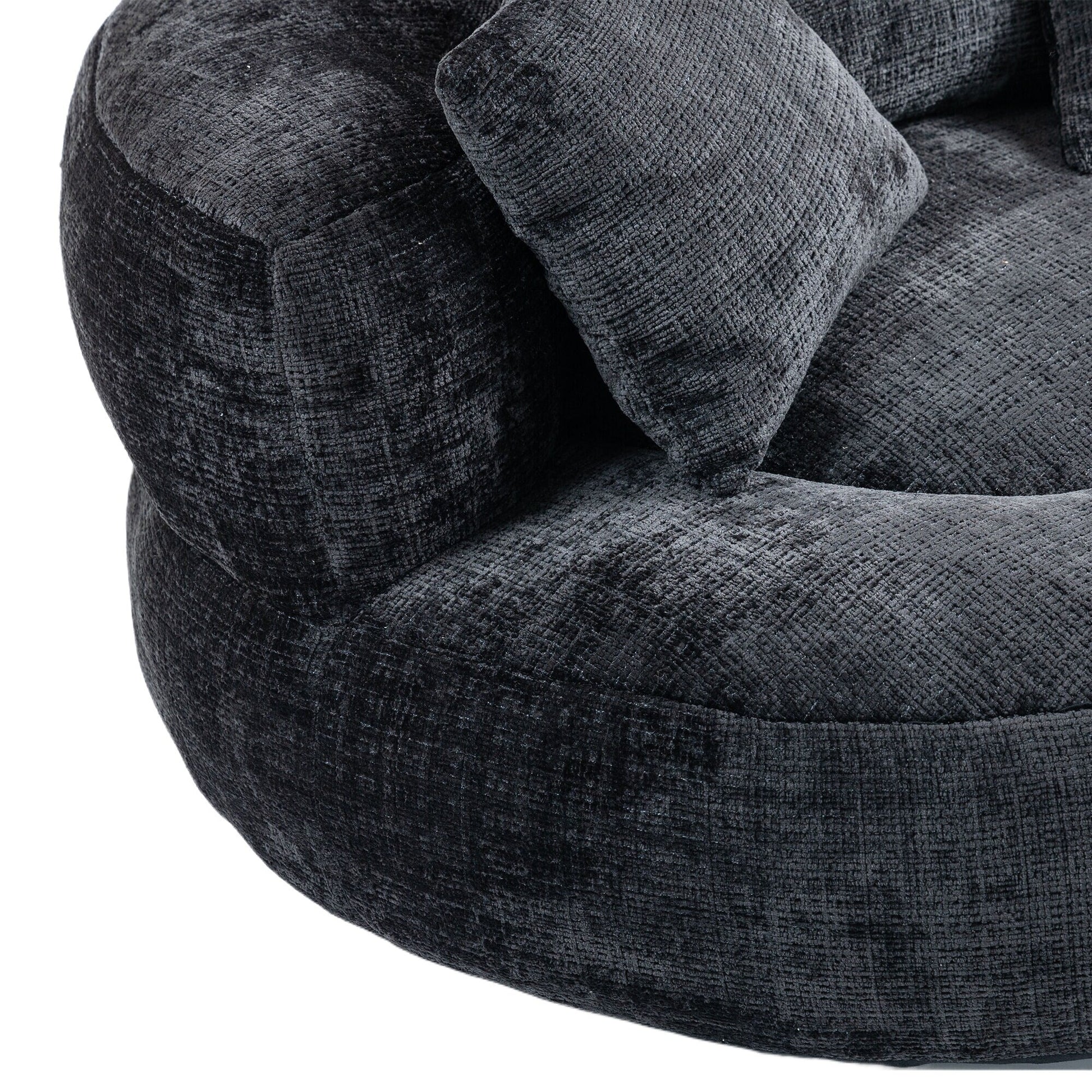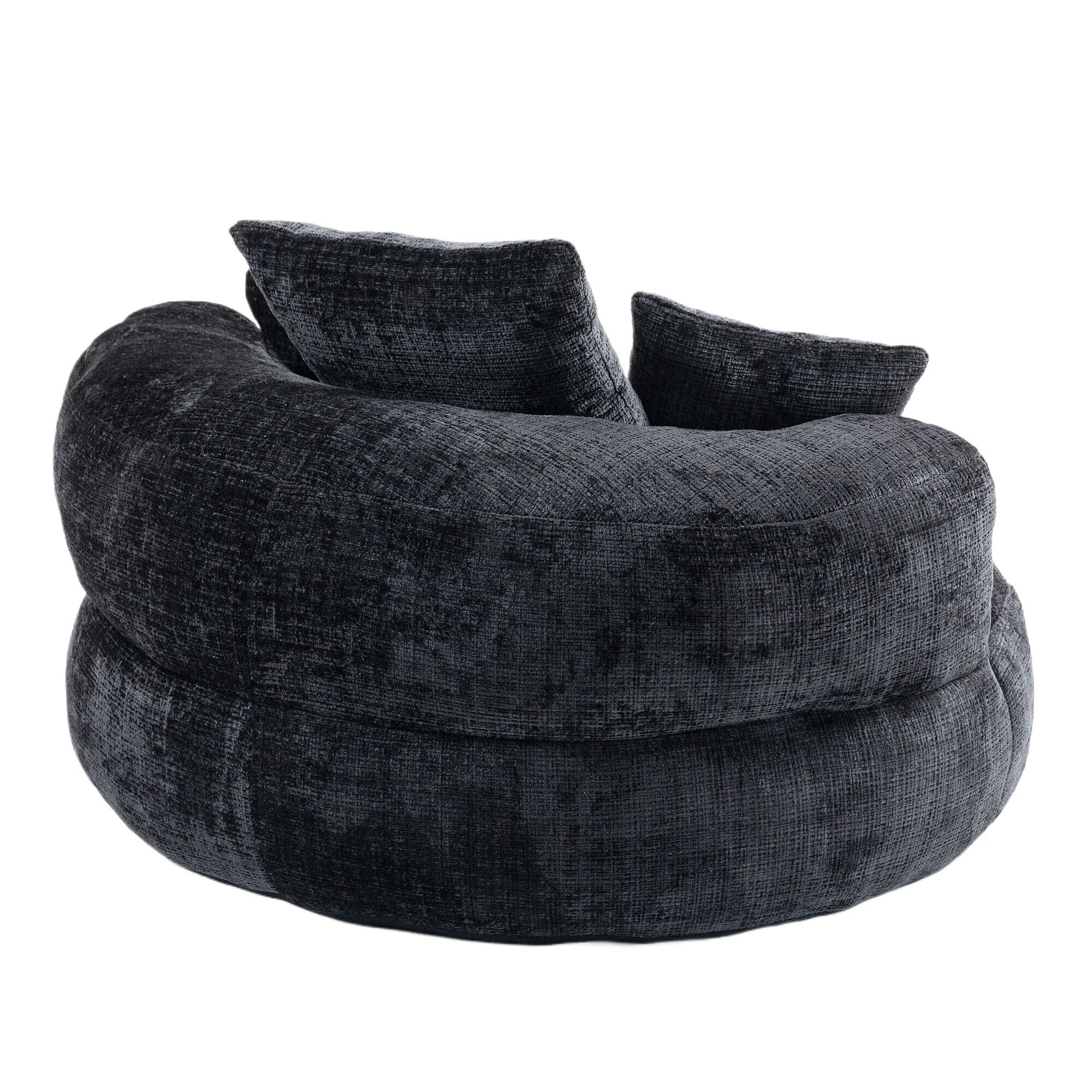 Black Oversized 42.52 Chenille Lazy Bean Bag Single Sofa with Three Pillows for Bedroom