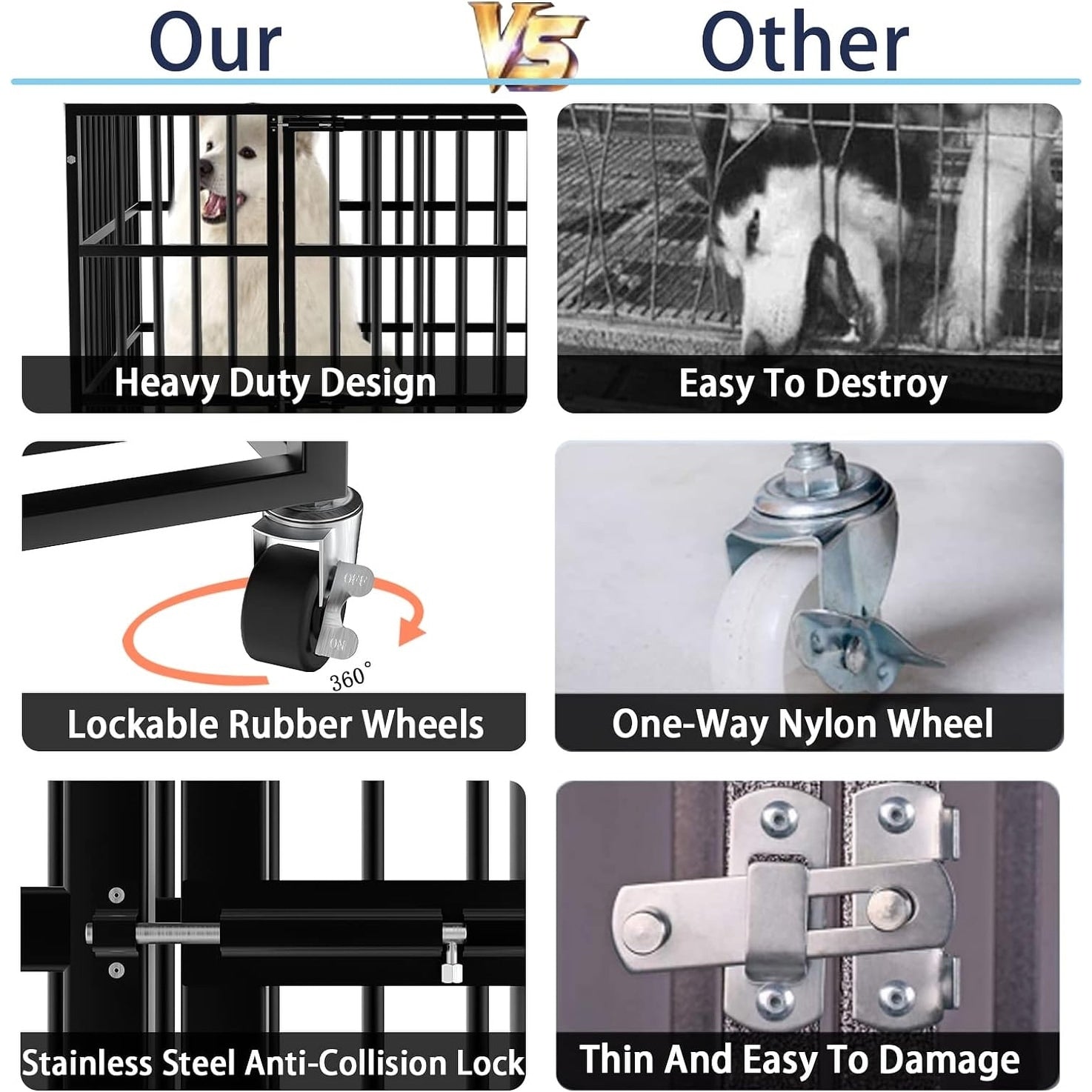 - 🐶【Great Heavy Duty Dog Crate For The Money】This dog cage is specially designed for German Shepherd, Golden retriever, Labrador and other large dogs.If you have any problems with your dog cage during the year, you can always contact us and we will be responsible for your lovely dog.