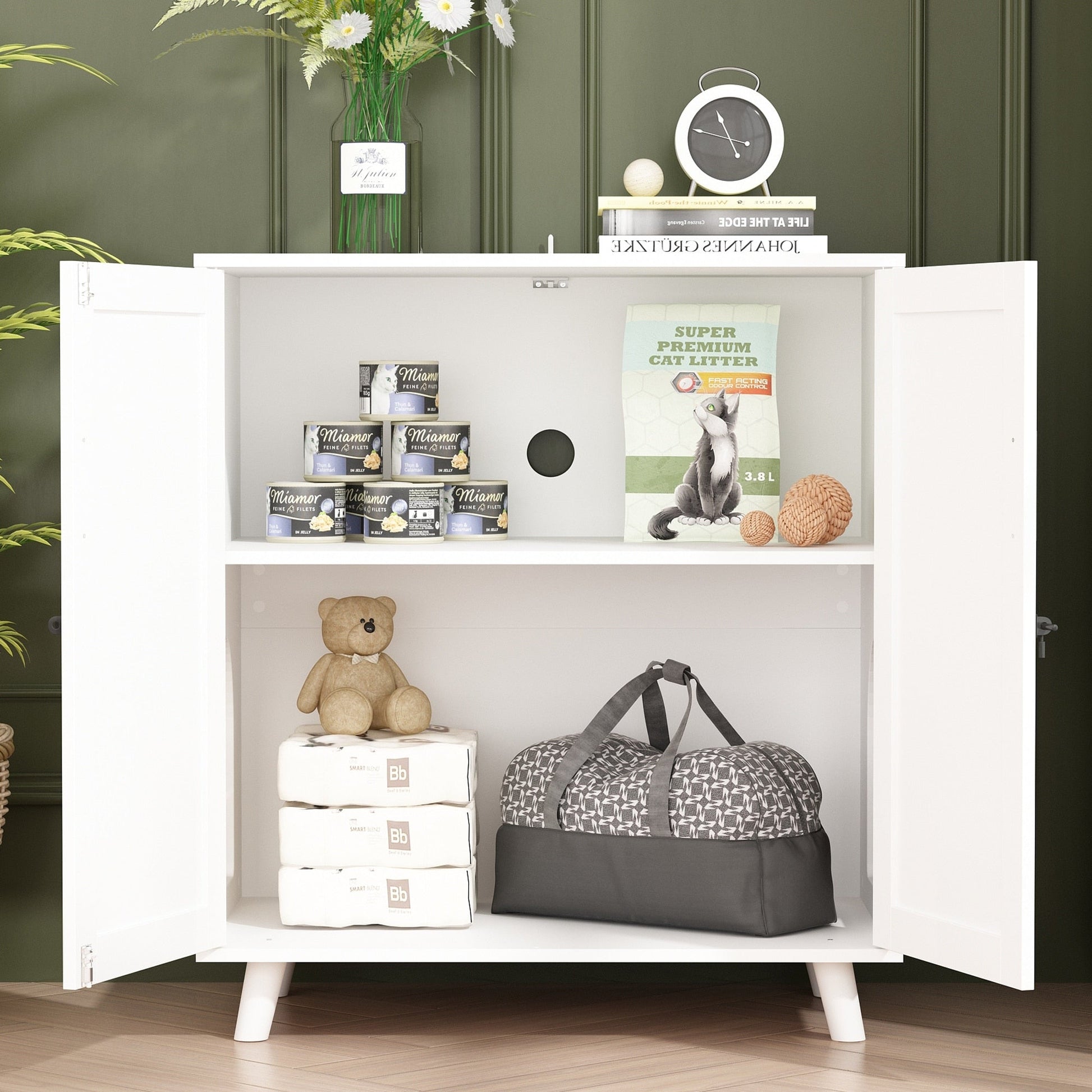 Cat Litter Box Enclosure Cat House Side Table Door Cabinet Bookcase