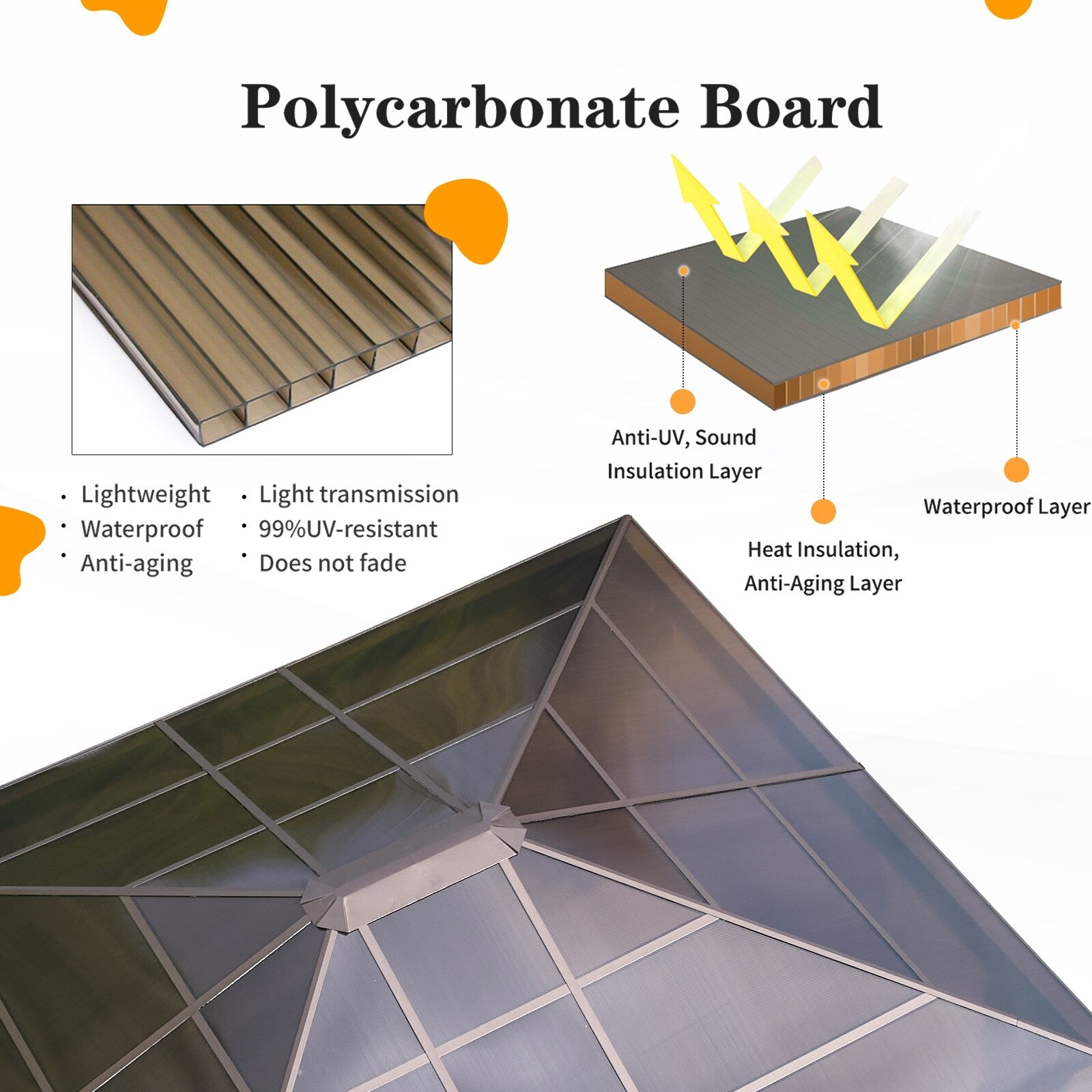 EROMMY Hardtop Gazebo,Outdoor Pergola with Double Roof & Netting & Curtains,Heavy Duty Canopy for Patio, Backyard, Pool party