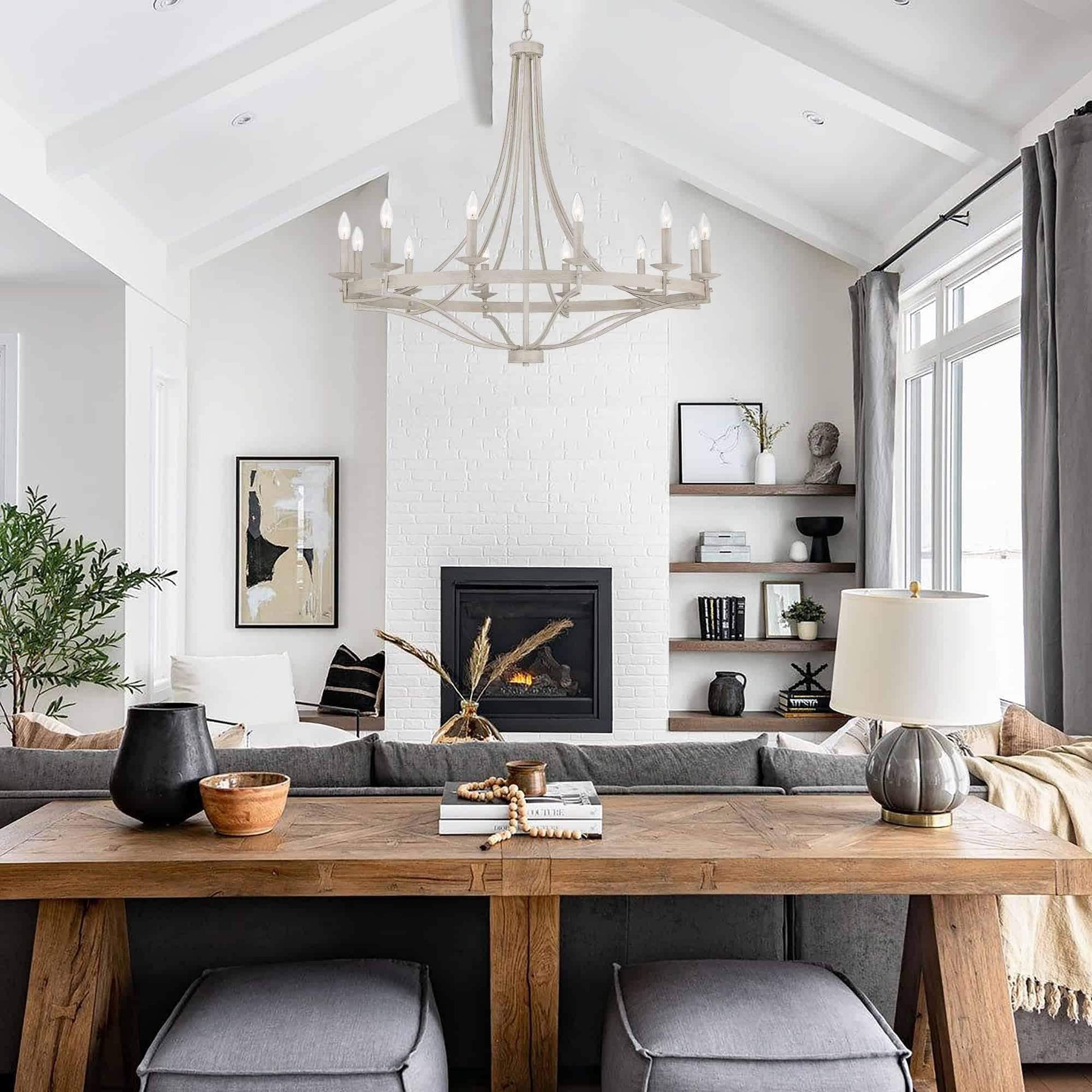 Stunning your space with the updated wagon wheel chandelier. This large chandelier instructed by a wagon wheel frame centered to elegance curvy arms and classic candlestick, present a statement piece that combined traditional and empire element. Finished in various color for meeting your interior style of french country, traditional, mid-century modern, and even coastal. Large size and adjustable height make this light fixture perfect for large space and high ceilings. Ideal for living room, foyer, staircase, hallway, dining room, or bedroom.