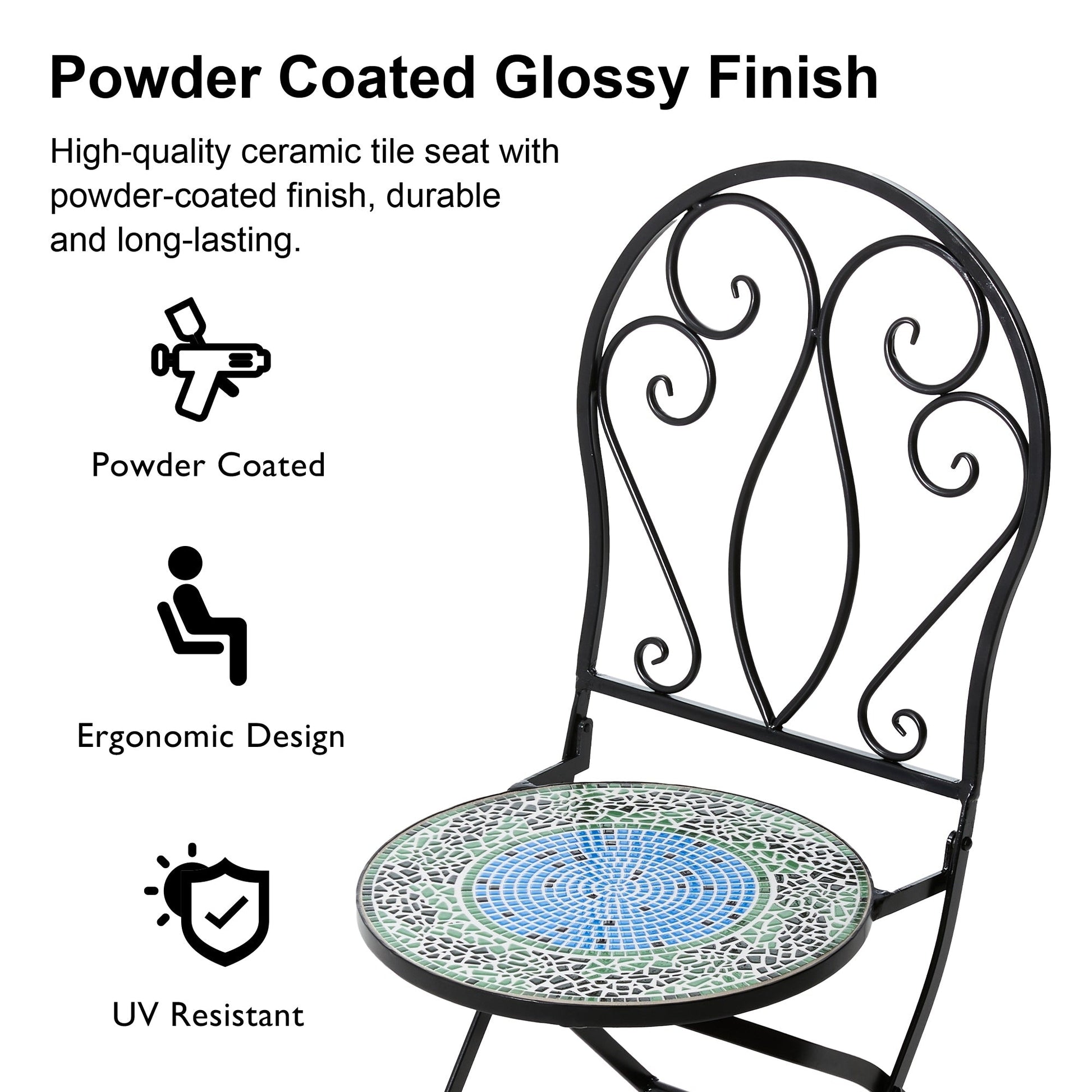 Glitzhome Outdoor Metal Folding Bistro Set 3PCS Patio Table Chairs