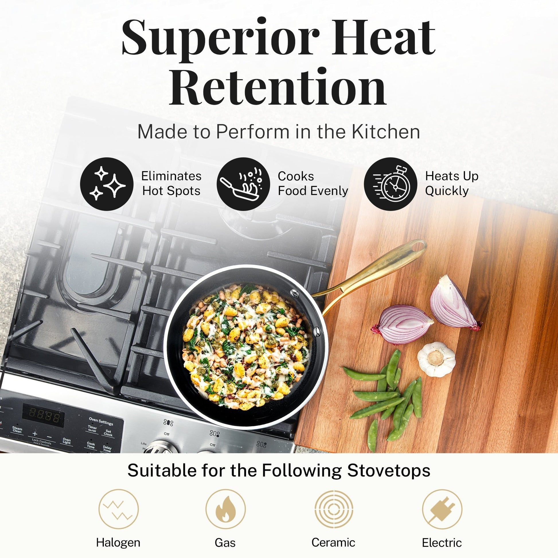 - Oven and Stovetop Versatility: Safe for use on gas, electric, ceramic, and halogen stovetops, and oven safe up to 500°F, allowing flexibility for stovetop-to-oven cooking.