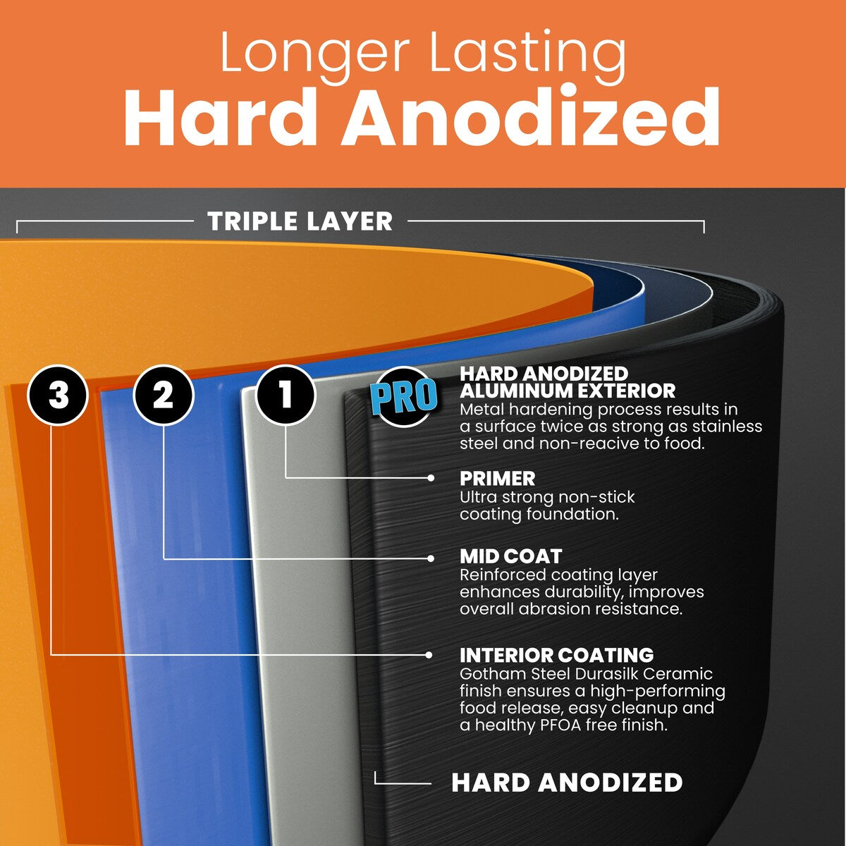 - Hard Anodized: Built to last, Gotham Steel Pro Premier cookware set is constructed from hard anodized aluminum, stronger than any stainless steel or regular aluminum, providing quick and even heat conduction through cookware, while resisting wear and tear, and ensuring years of outstanding usage from each piece of cookware.