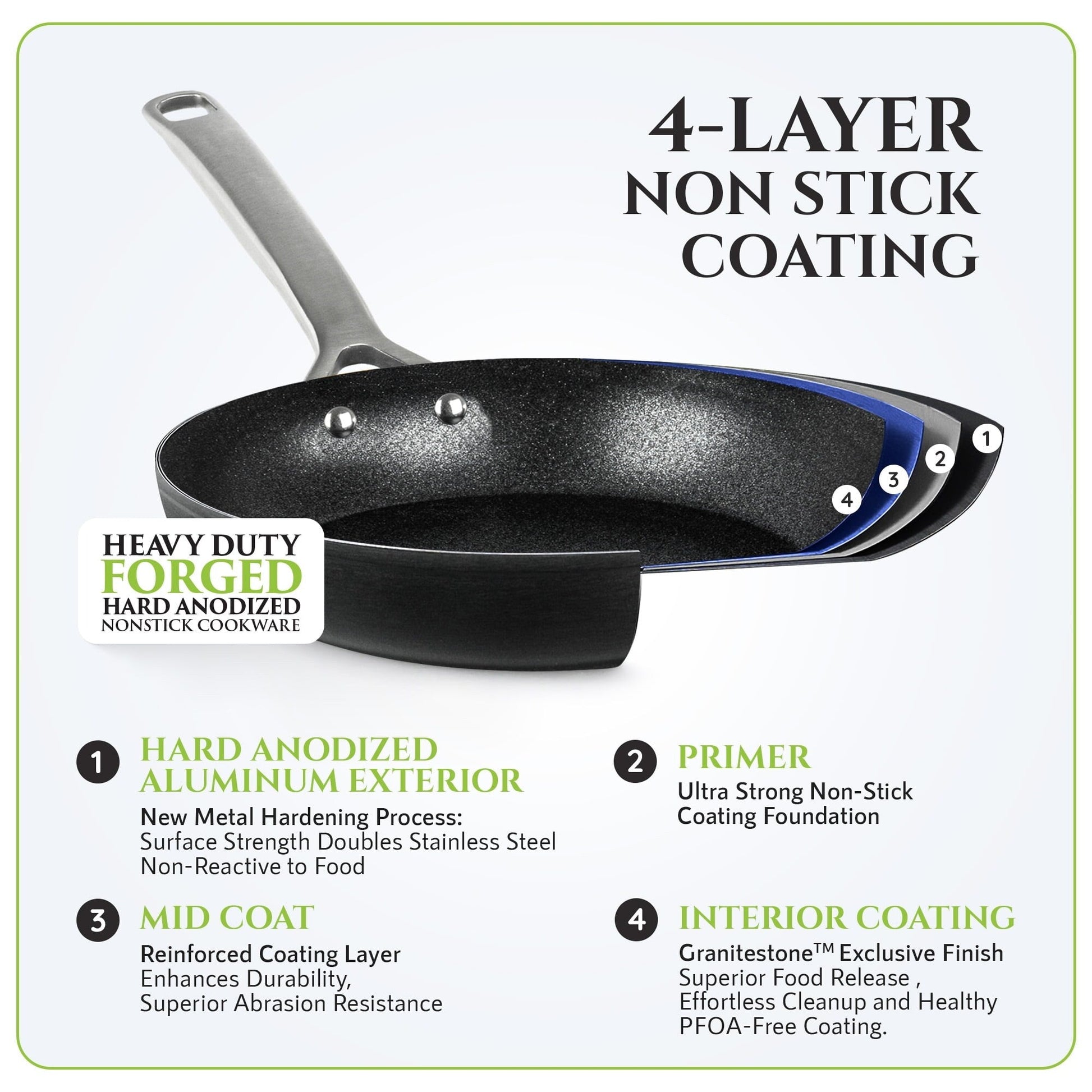 - NOTHING STICKS: Think healthier foods, easy food release, and effortless cleanups with Granitestone Armor Max- Each piece of cookware features a 4-layer ultra release nonstick coating designed to slide foods right off and durable enough to withstand any metal utensils, spatulas, spoons, whisks and even electric beaters!