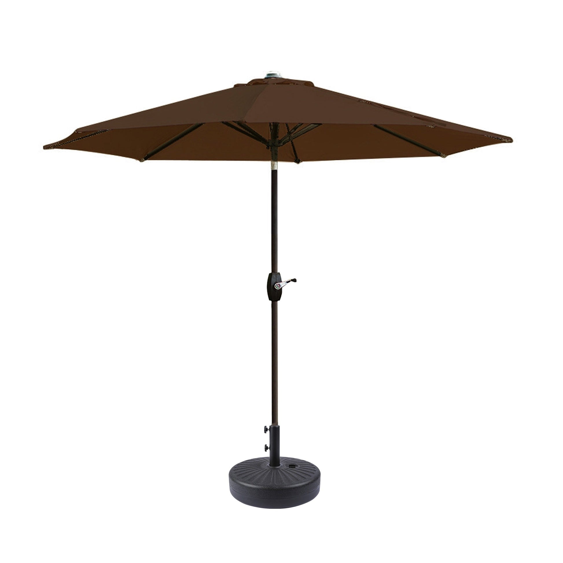 Add some shade to your home with this essential umbrella and fillable base weight set!. Designed with style and durability in mind, this piece is built with an 8 rib steel frame. The polyester fabric blocks up to 95% of UV rays to keep yourself while being fade and water resistant. A push-button tilt mechanism lets you adjust as you please, so you can get just the right amount of sun! The best part is, both are easy to setup and to clean!
