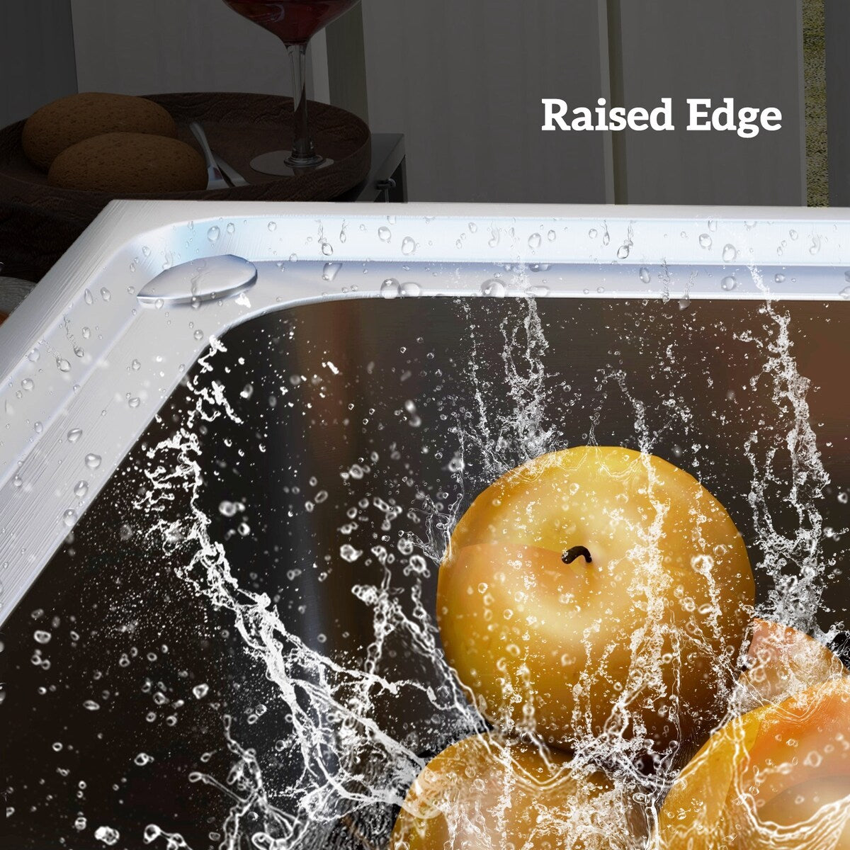 ● Raised sink edge prevents water from flowing out