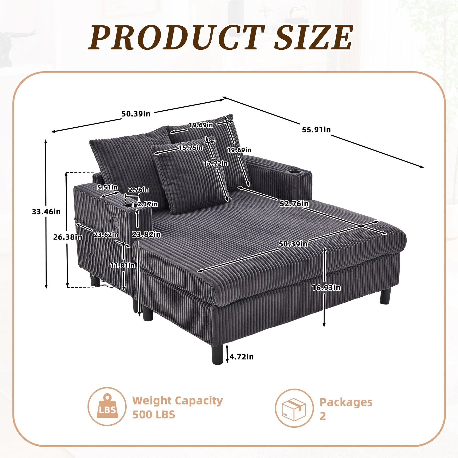 - 1*USB(5V-2.4A)+1*Type-c(5V-2.4A) Practical Type-C and USB ports: The sofa is built-in 1¡ÁUSB (5V-2.4A) + 1¡ÁType-C (5V-2.4A) charging port, which can be charged at any time, making the sofa the 'energy supply station' in the living room, so that you can catch up with the drama and office work without losing power, and enjoy the comfort and convenience in one step!?