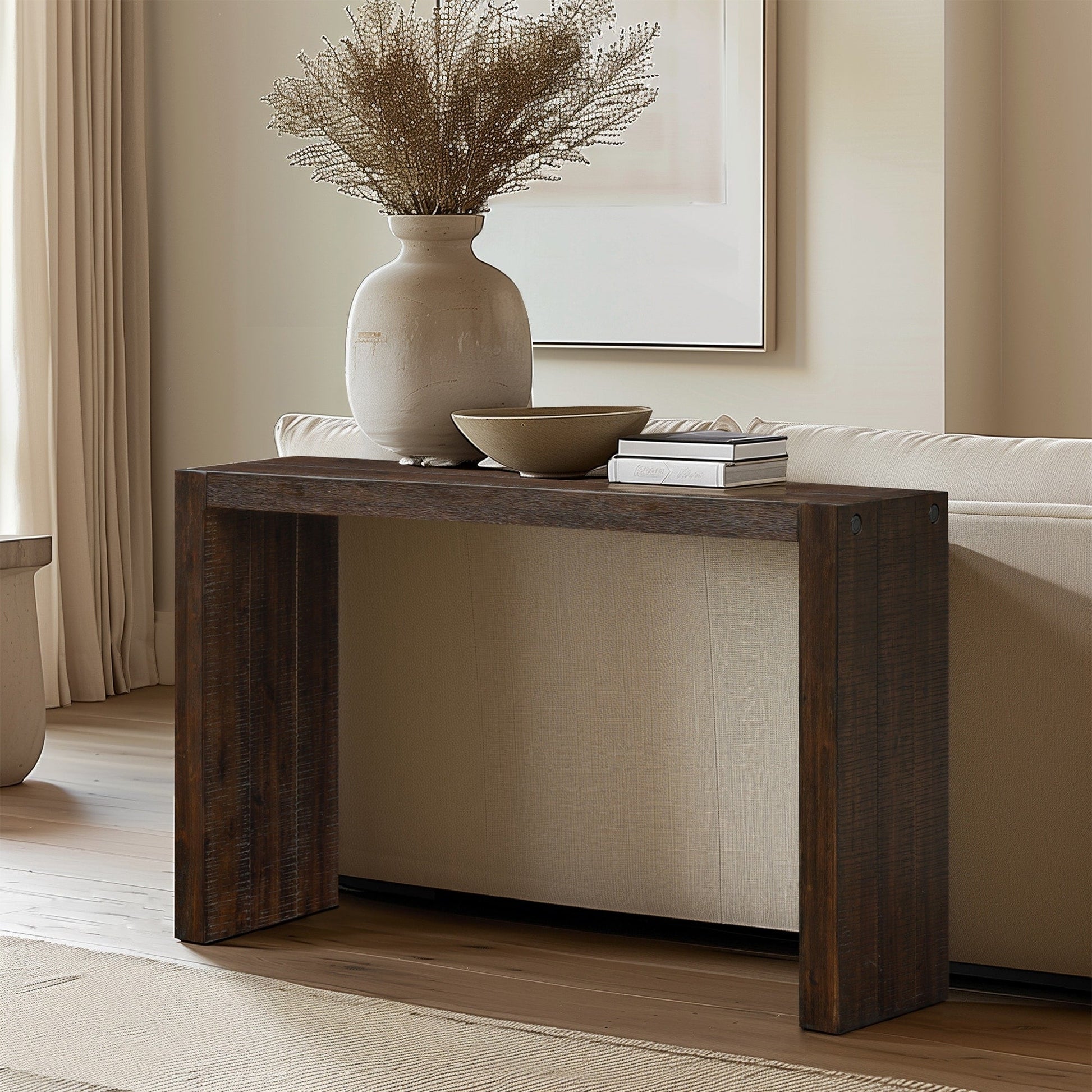 - Modern solid wood console table with clean lines and a rich finish for timeless appeal