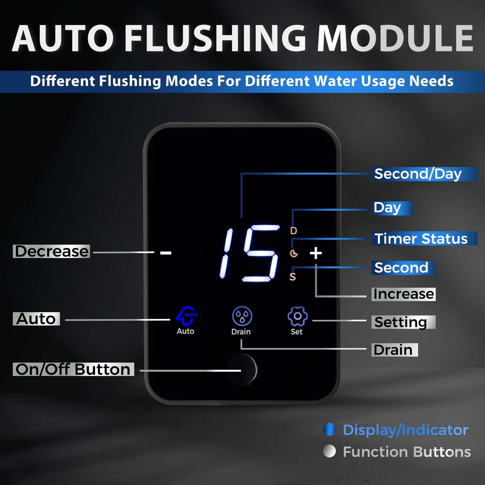 - [Auto Flushing Module] iSpring WSP100ARJ whole house water filter has an integrated auto flushing module (dual power supply) that saves time and effort on routine maintenance. Choose from auto, semi-auto, and manual on the HD touch screen to enable the system to automatically flush on a preset schedule.