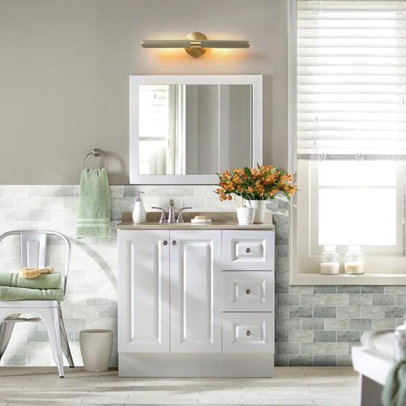 The Picture Lights For Wall are constructed from high-quality materials including a sturdy metal frame and thick glass to ensure durability and longevity. The gold vanity lighting fixture finish gives it a sleek and stylish look that complements any interior design scheme, making this a stunning piece of lighting that will enhance the décor of any room it is placed in. This 2-light wall light fixture is versatile and you can either hang it vertically next to your mirror or horizontally above the mirror.