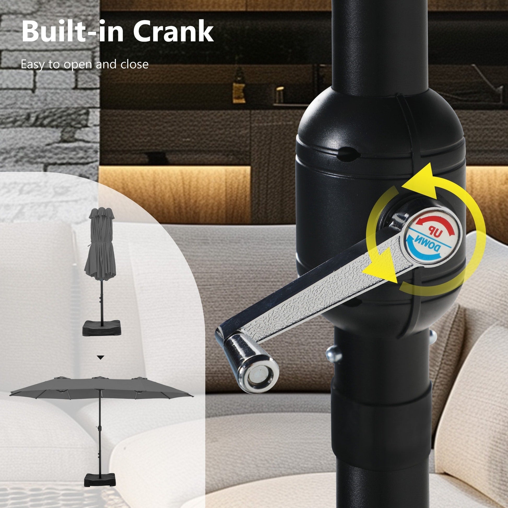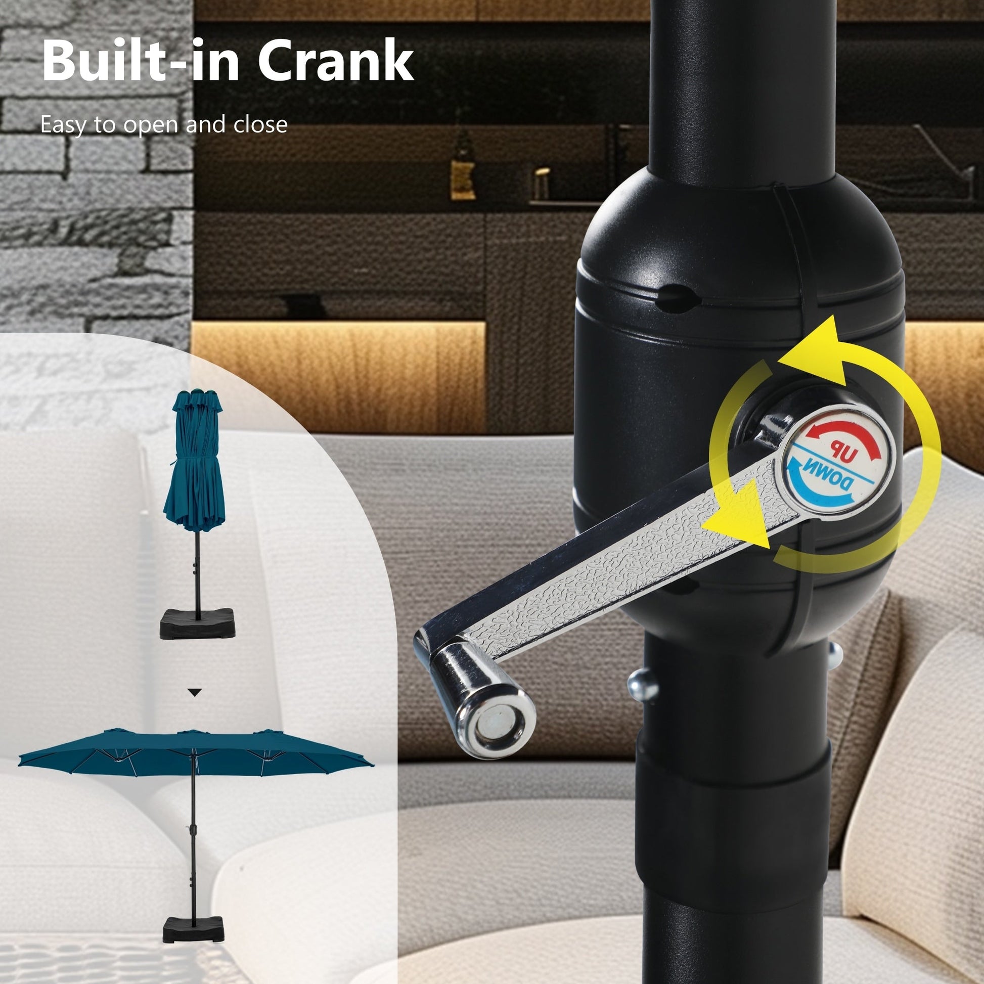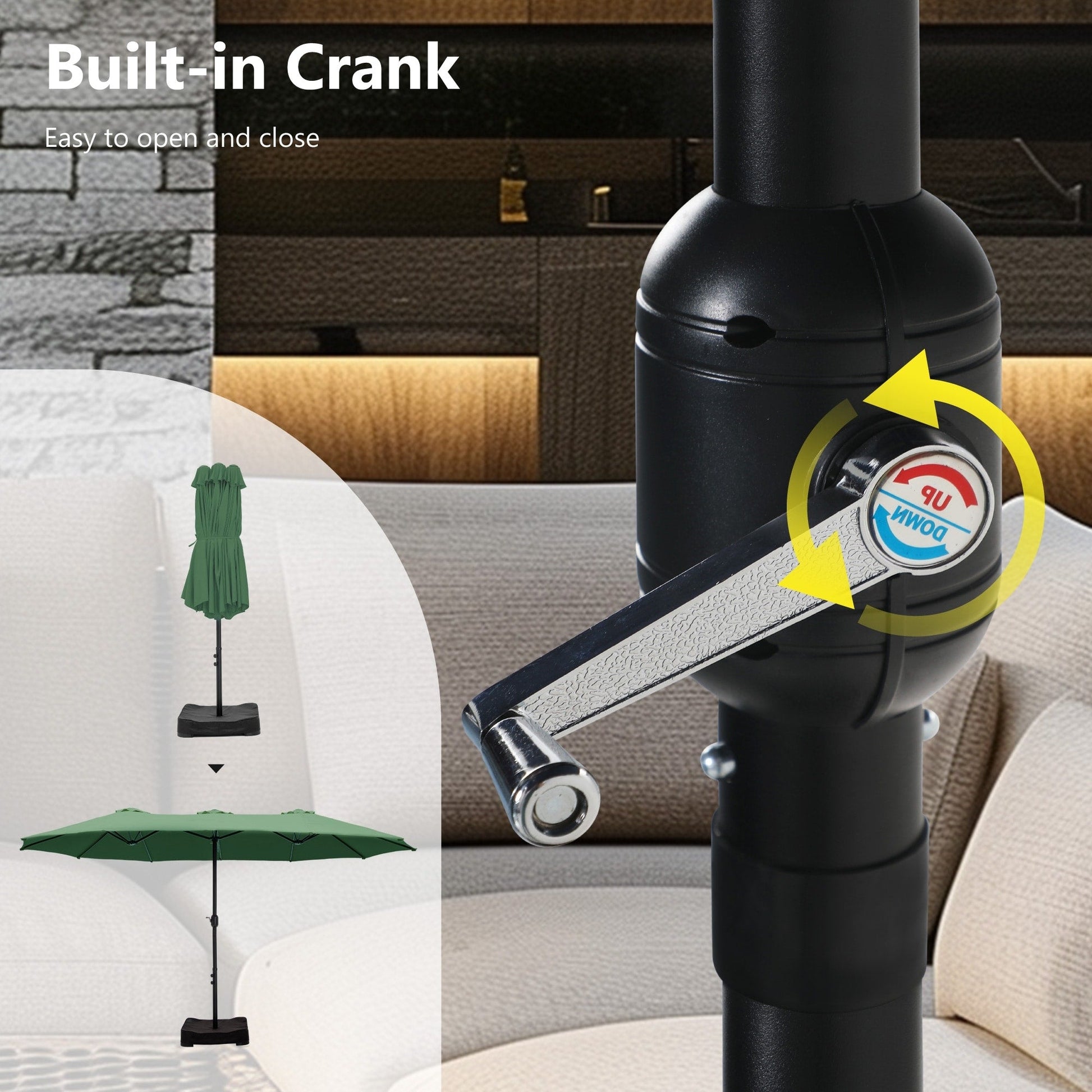 - Easy Operation: Classic crank design makes it easy to be set up in a few minutes. Please open the umbrella after it has been fixed to the base