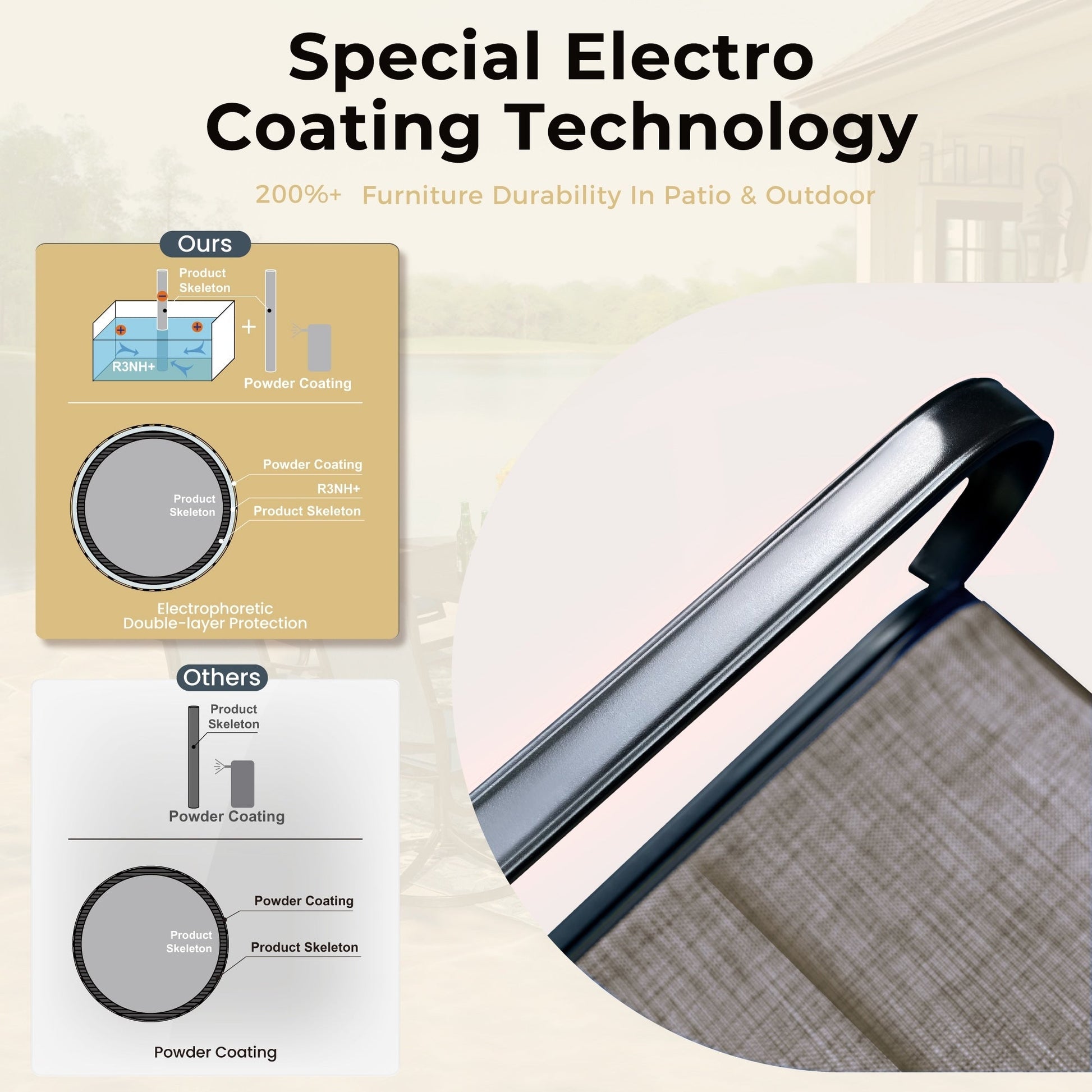 - Reinforced integral steel rectangular table with anti-rust coating and a 1.57' umbrella hole