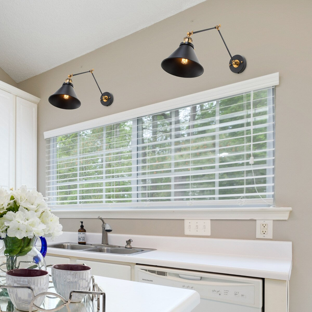 Add a touch of elegance and functionality to your decor with the Malryn Set of 2 Modern Black Gold Adjustable Swing Arm Lights Plug-in Wall Sconces. These low-profile sconces are crafted from iron and feature a two-toned metal finish that creates a luxurious and low-key atmosphere. The adjustable arm allows you to direct light exactly where you need it, making it perfect for reading in bed or creating a cozy ambiance in your living room. With two installation modes from hardwired to plug-in, these sconces are versatile and easy to use.