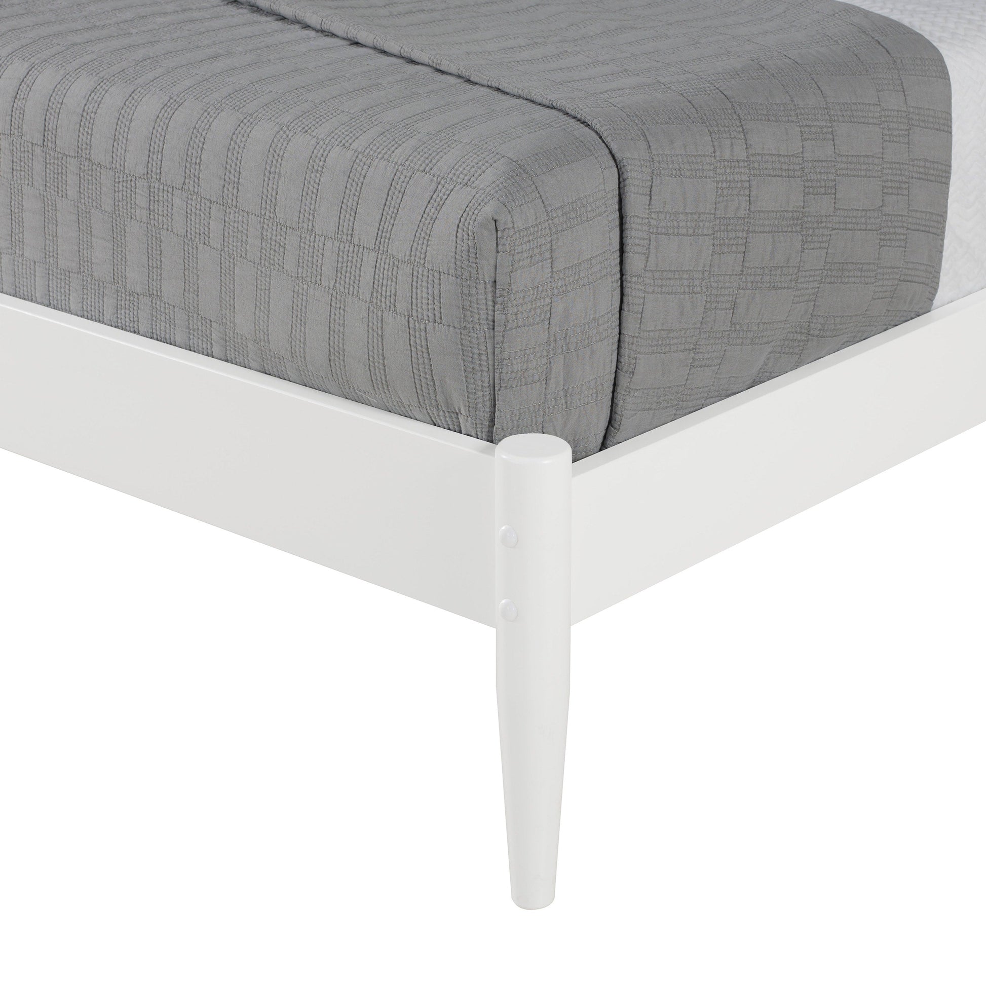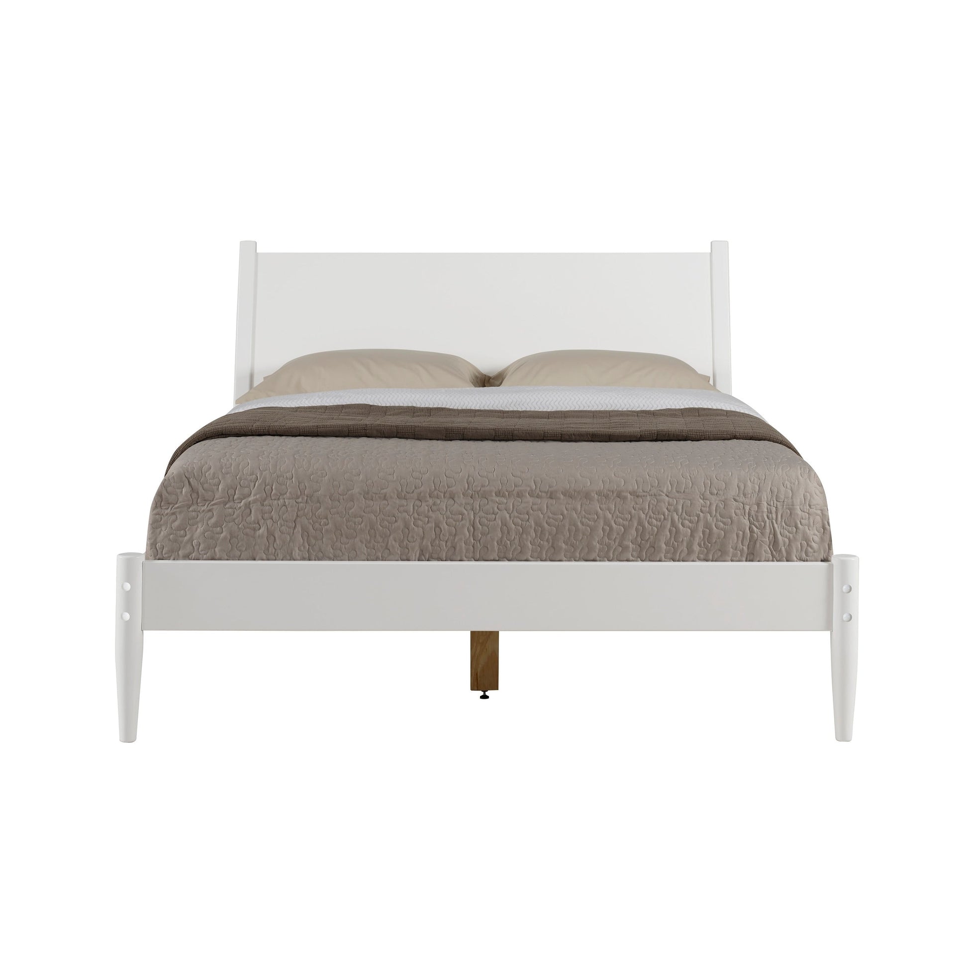 - Smooth panel headboard with extended posts and round tapering legs
