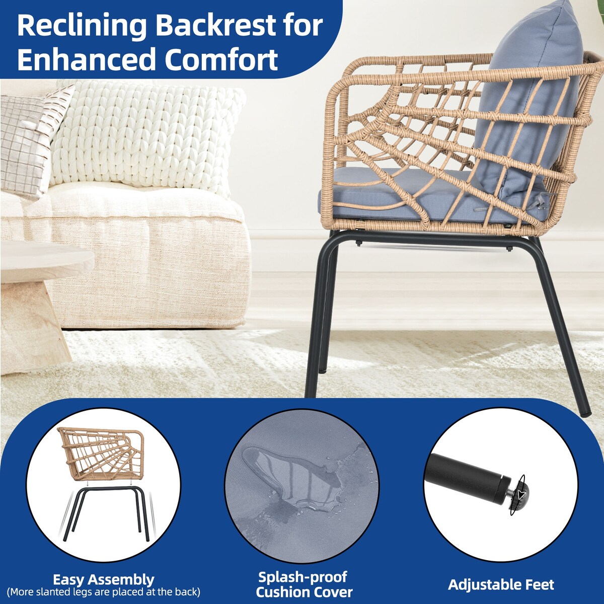 Moasis 3 Pieces Outdoor Wicker Furniture Patio Bistro Set with 2 Chairs and Coffee Table