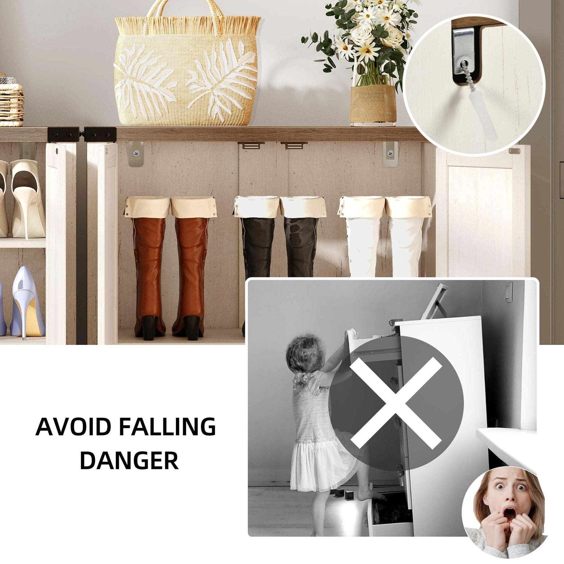 - Included anti-tip kit enhances safety and stability.