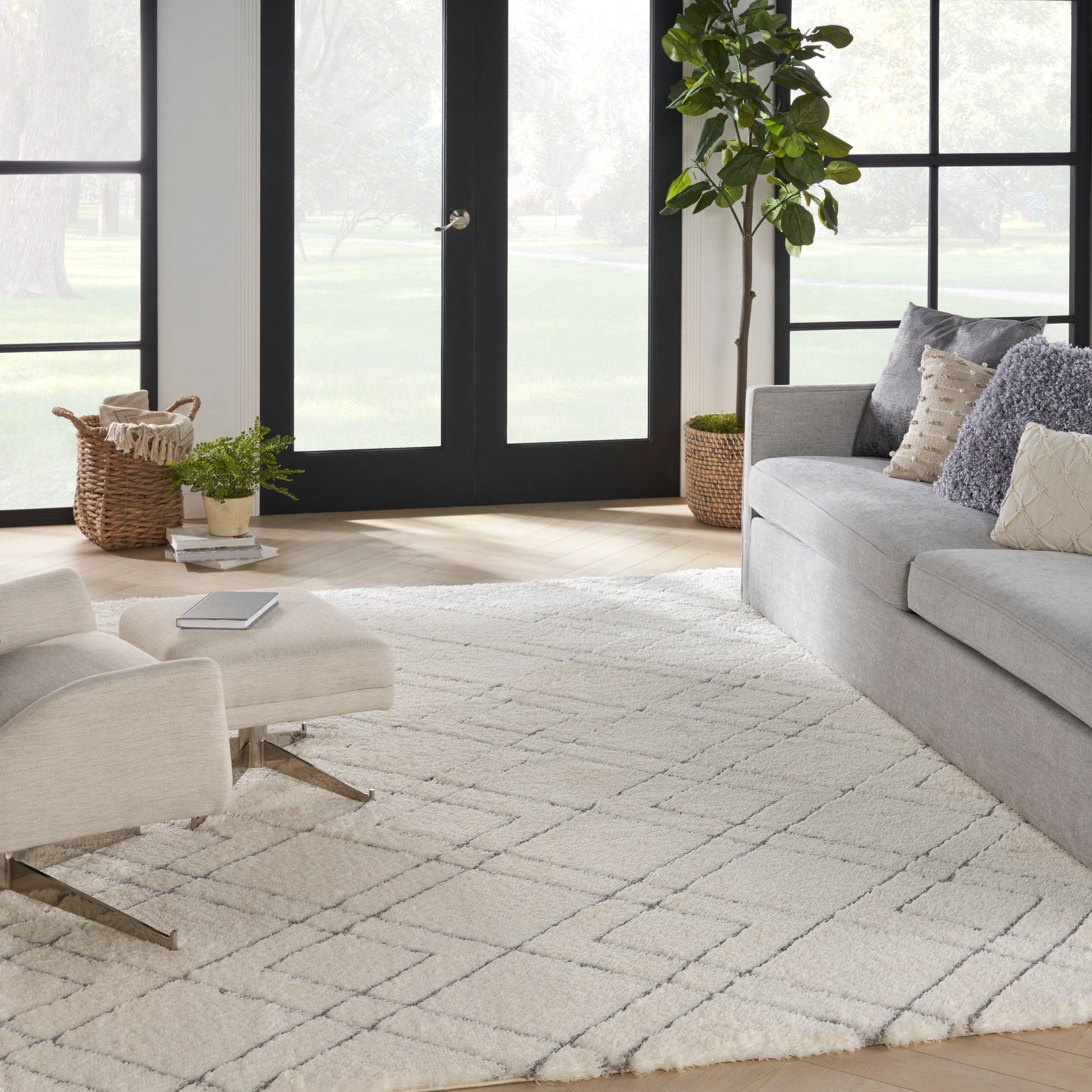 With its simple, Scandinavian-inspired pattern and neutral ivory ground, this Luxurious Shag rug adds a layer of warmth and comfort to your space. Made from super soft polyester, it boasts a 1.25' thick pile that you'll love to sink your toes into. Place this geometric rug in your living room or bedroom for an instant touch of cozy, inviting style.