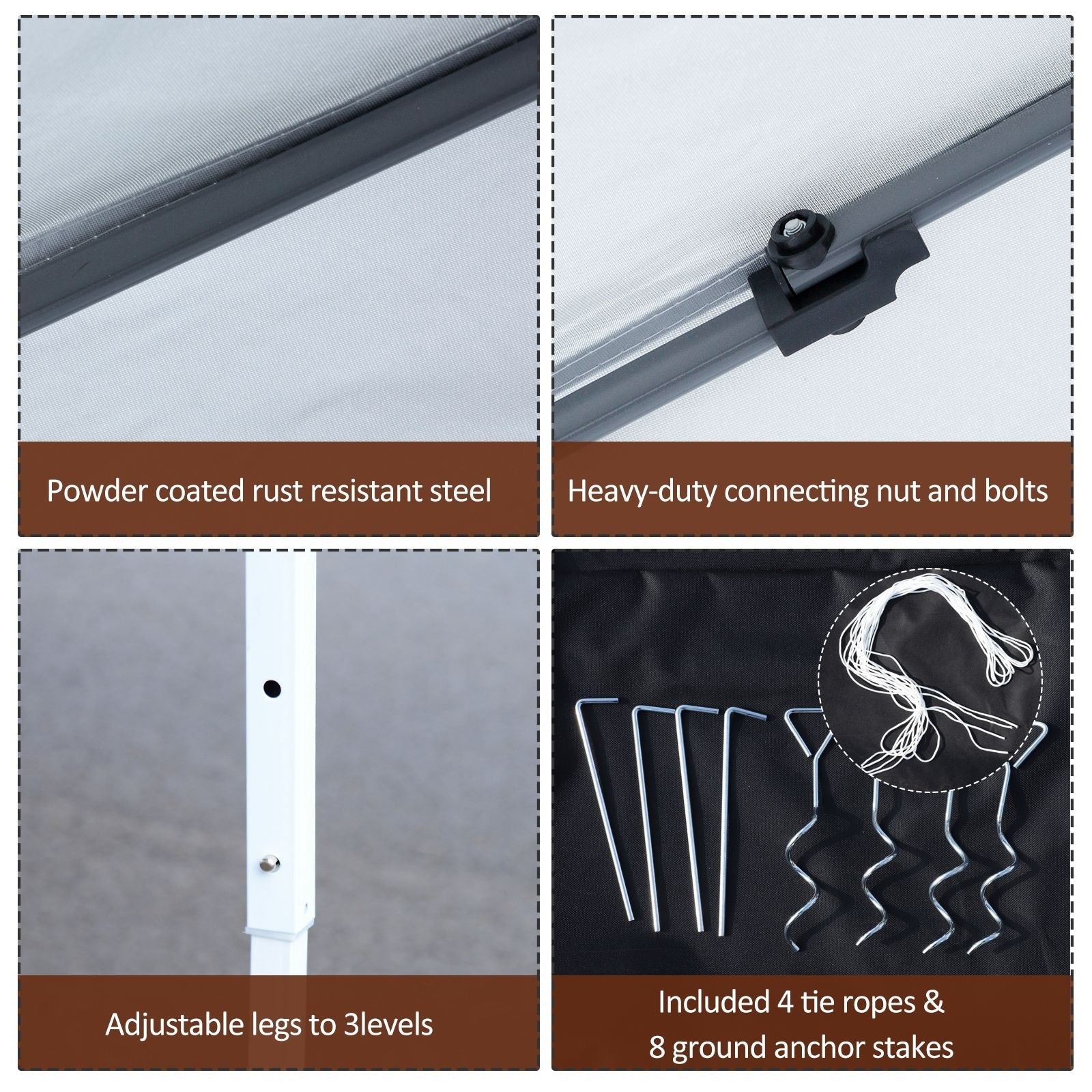 Grab your favorite drink and enjoy relaxing shade in a matter of minutes with Outsunny's 10'x 10' easy-up canopy. It's great for occasions including family gatherings, picnics, camping, or tailgates, and provides a place to unwind away from the sun's harmful UV rays. Use the instant canopy for open-air shade, or install the removable mesh walls for extra sun protection. Don't shy away from being outside, get in a gazebo from Outsunny.