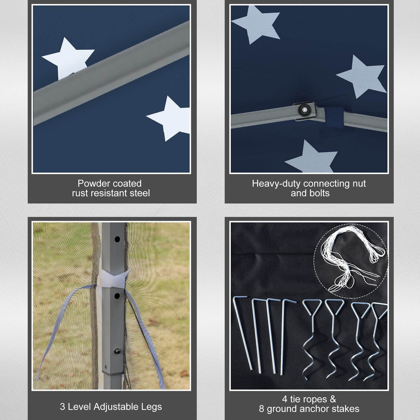 - Materials: Steel Frame, 420D Oxford Fabric, Mesh
