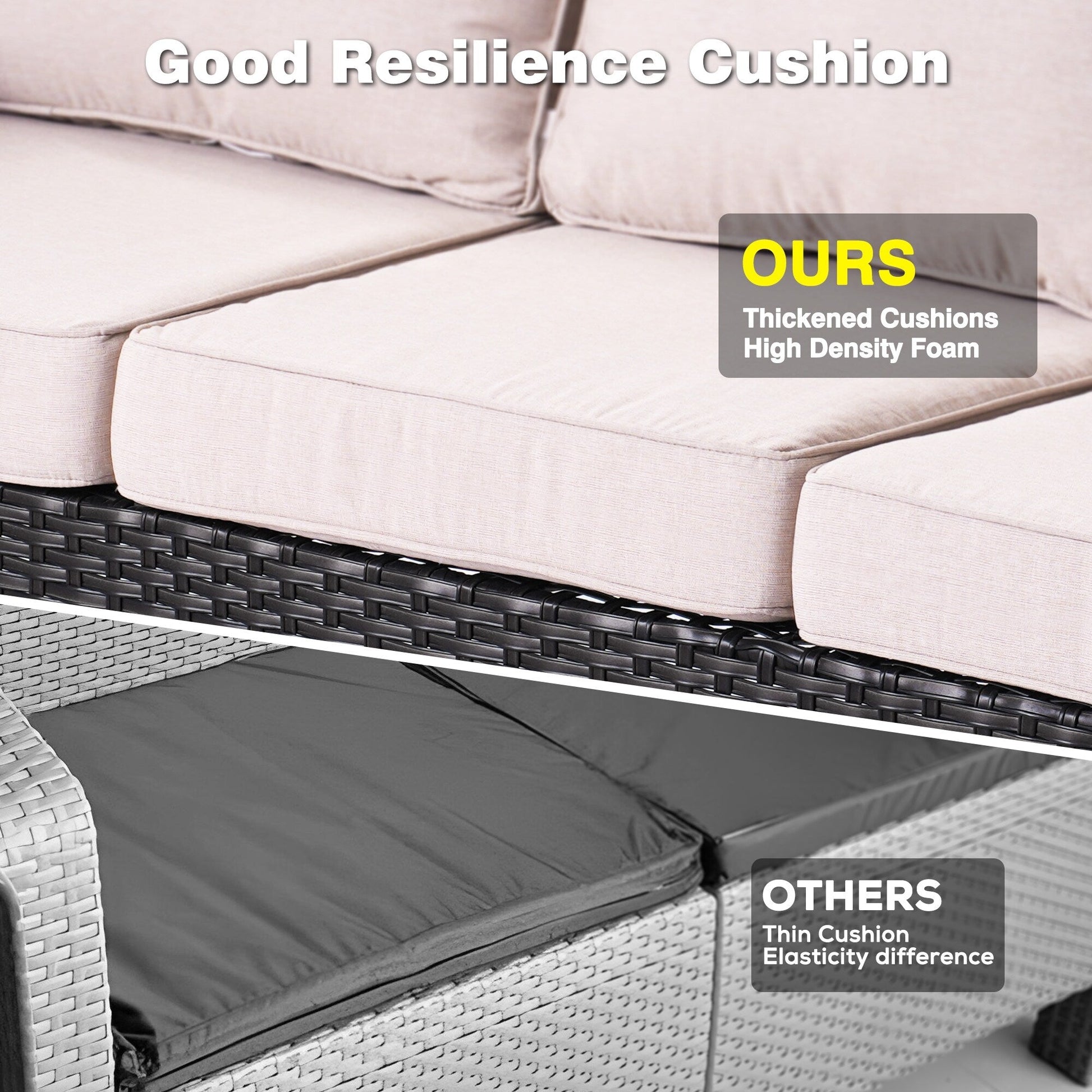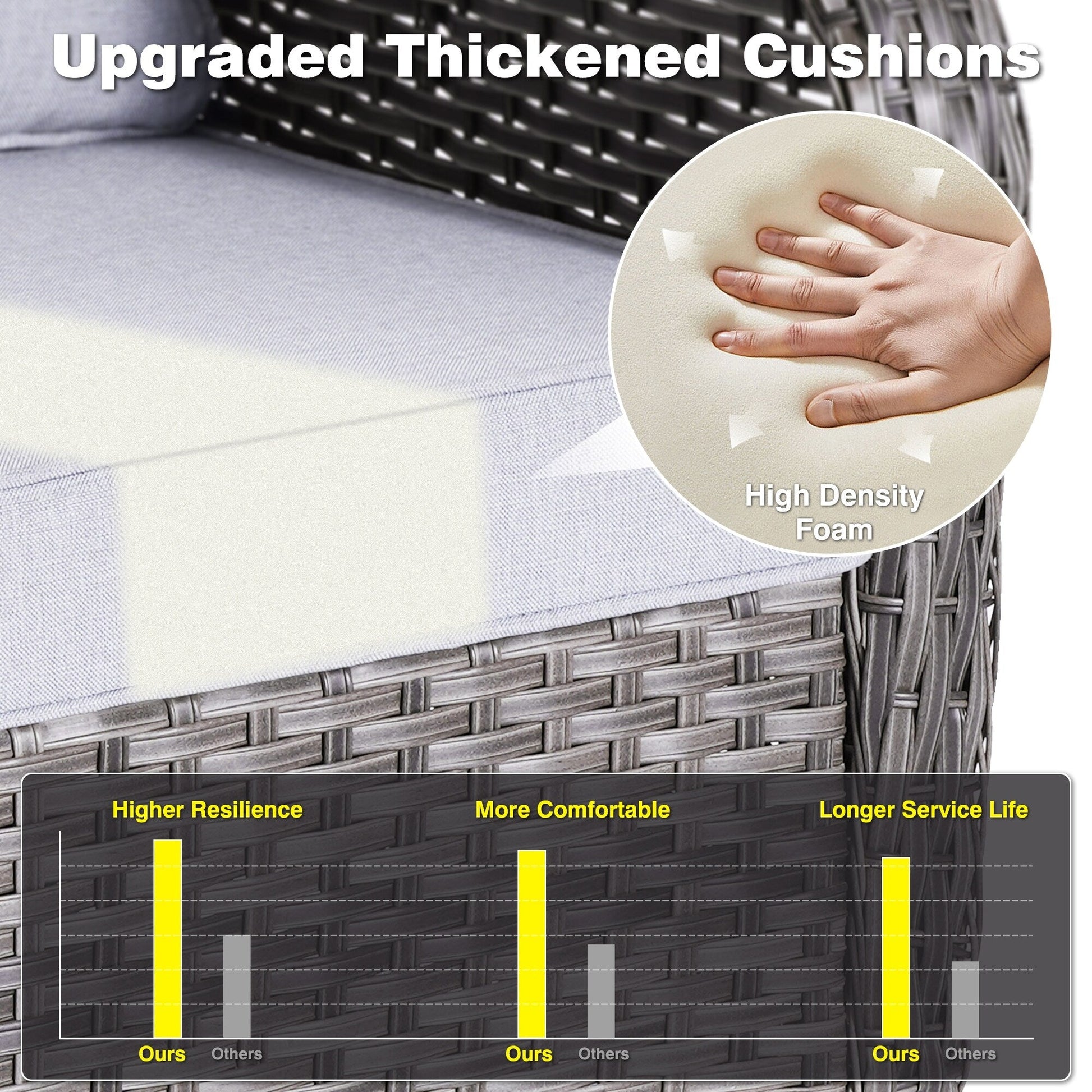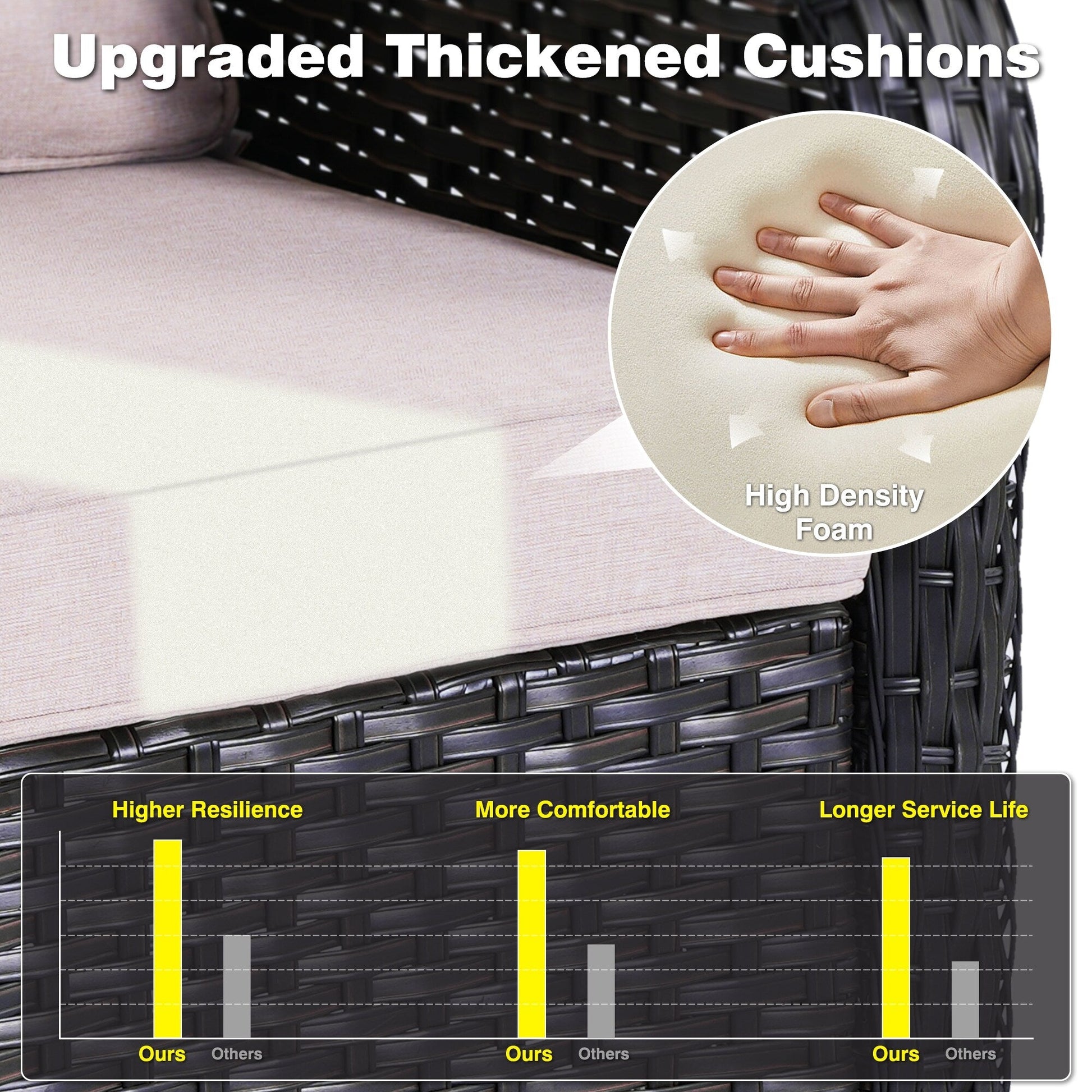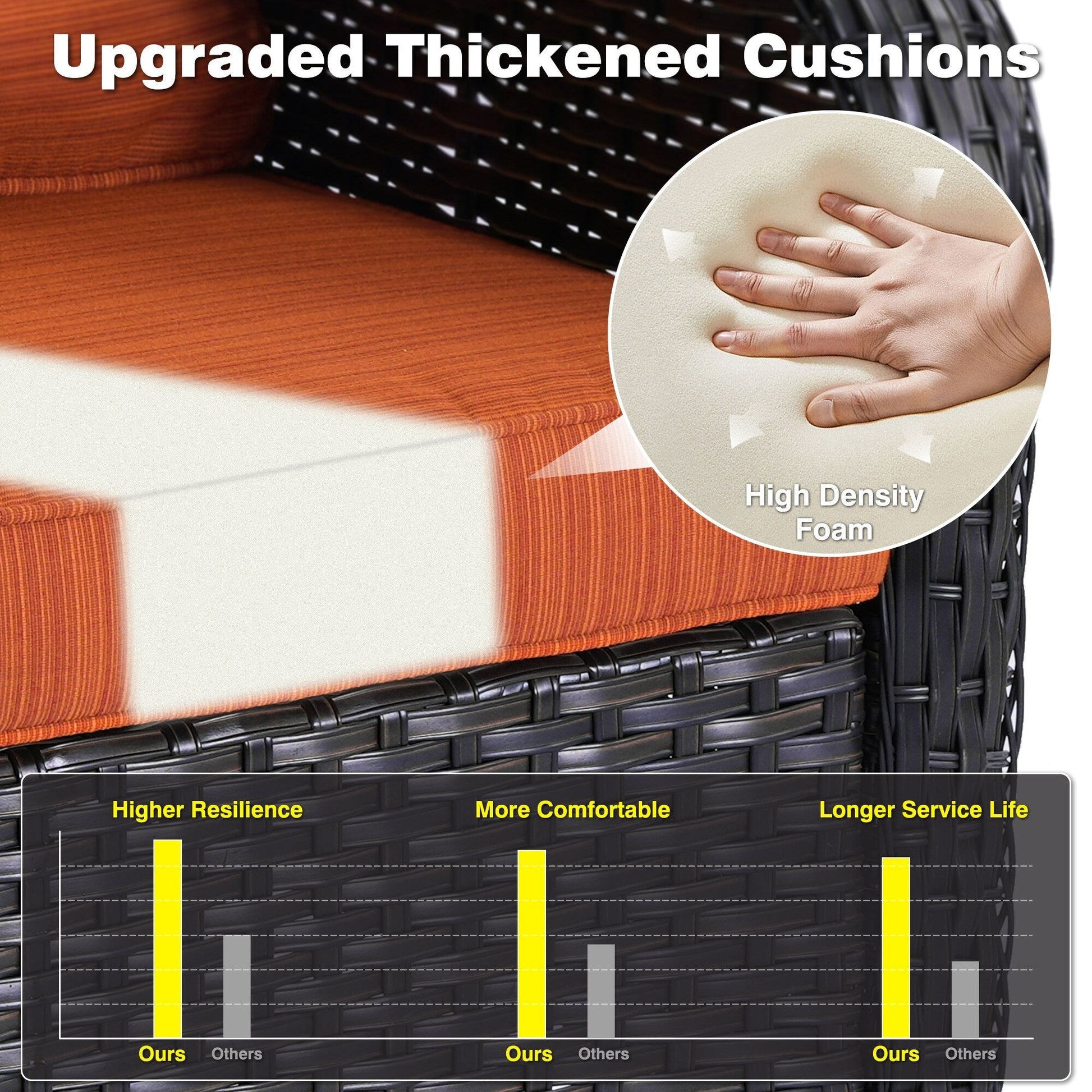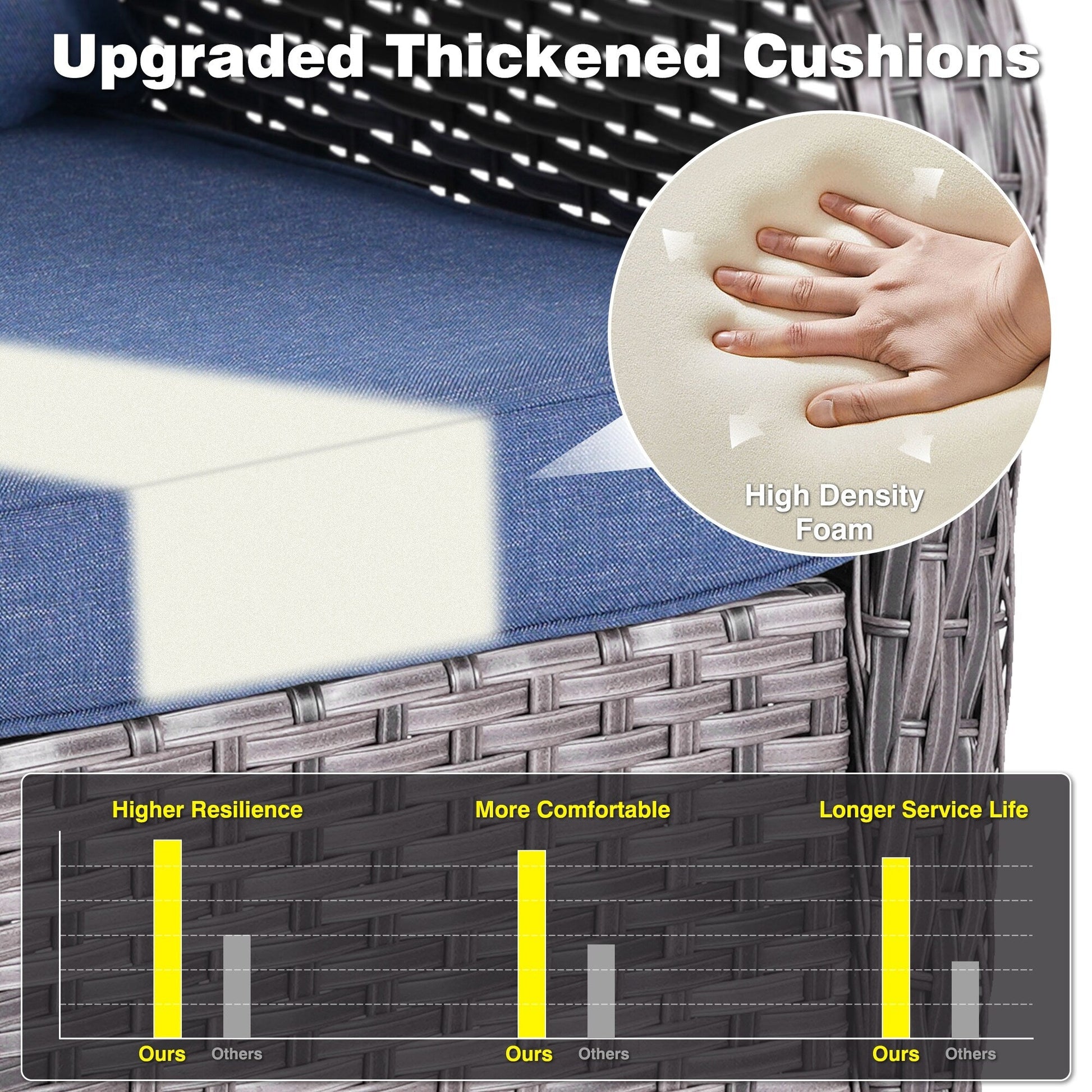 - Thick sponge polyester cushions with washable, water-repellent covers