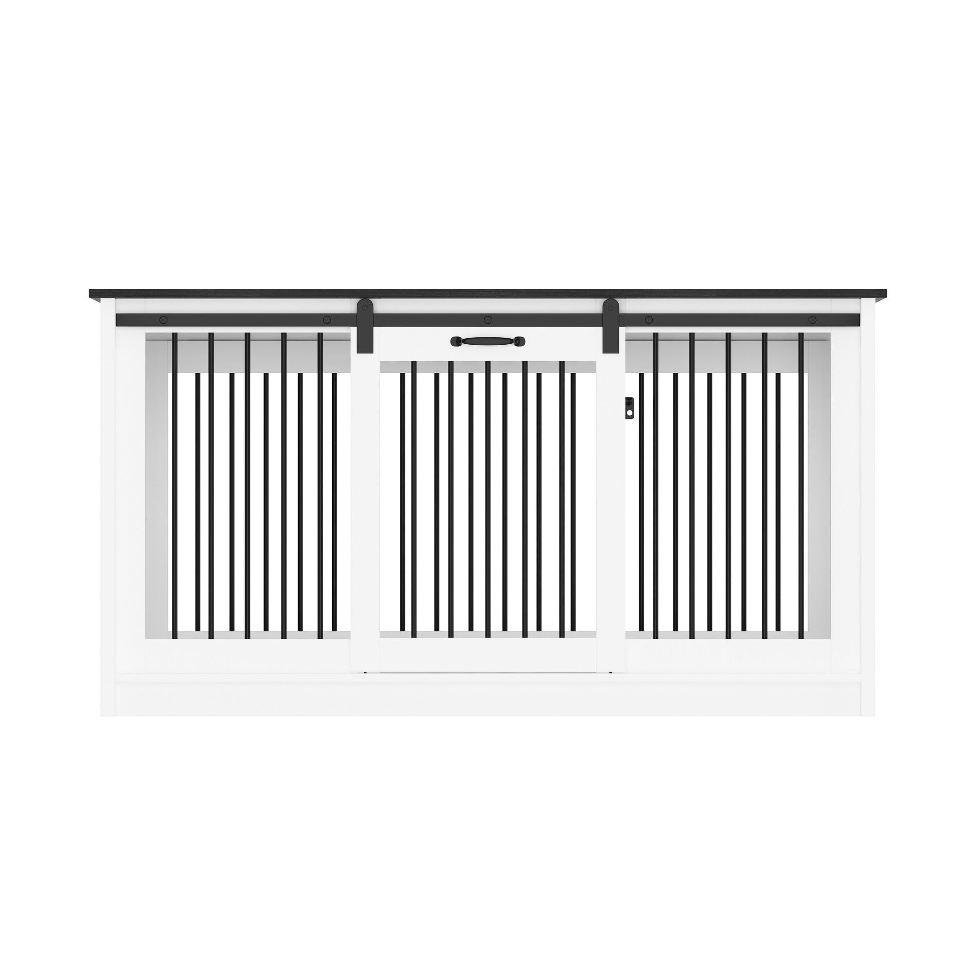 Assured Safety and Stability: Featuring solid iron bars, the crate allows your pets to stay engaged with family life while ensuring they're secure. A lockable barn-style door adds a layer of security, preventing any slips or escapes.