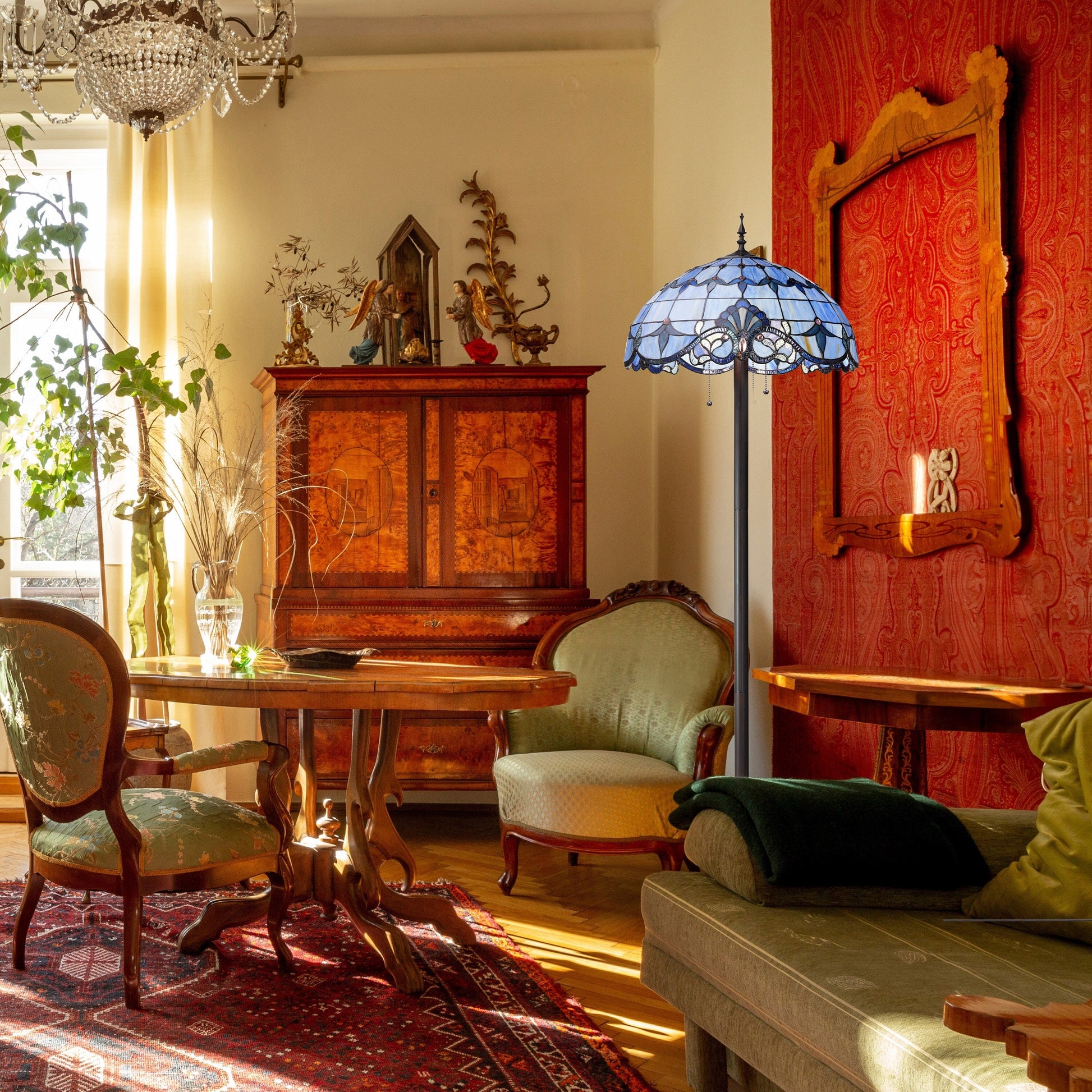 - Stunning, traditional Tiffany style design commands attention while blending seamlessly into a variety of decor styles