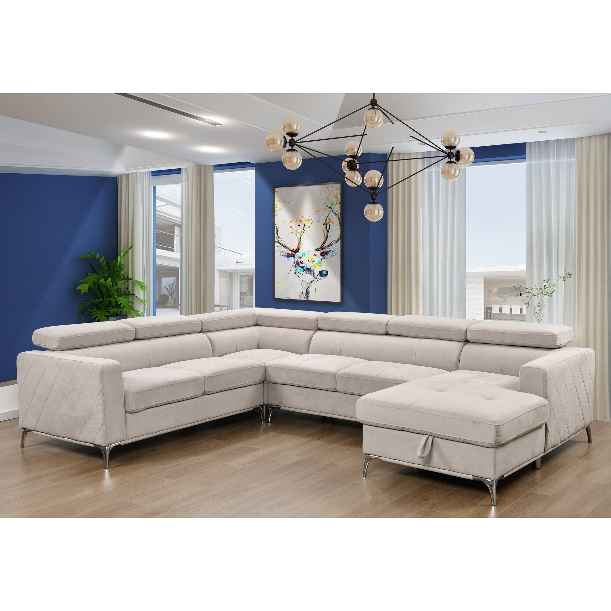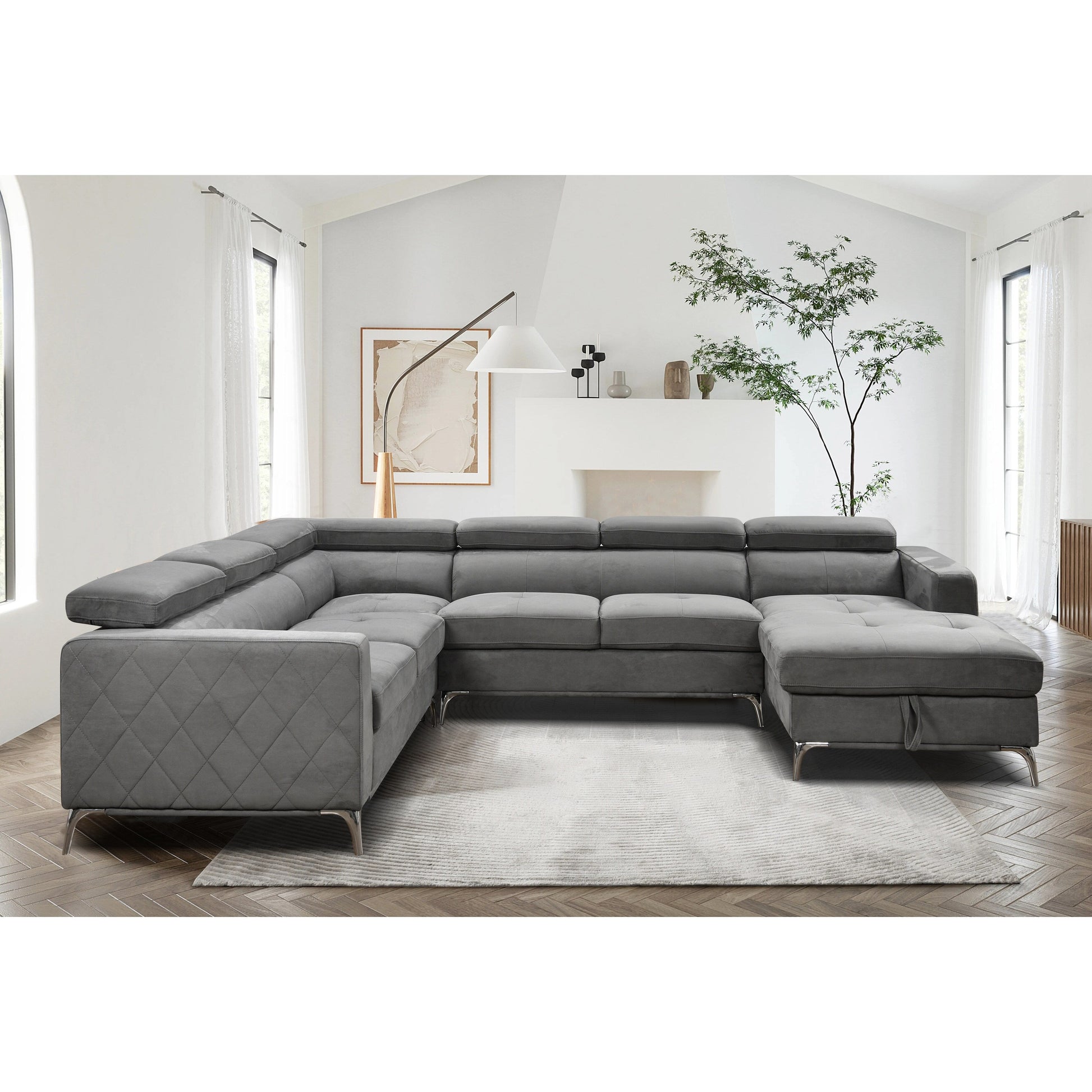 Roomfitters 122 Oversized Sectional Sofa Couch with Chaise Storage, Contemporary U-Shaped 7-Seater Sofa