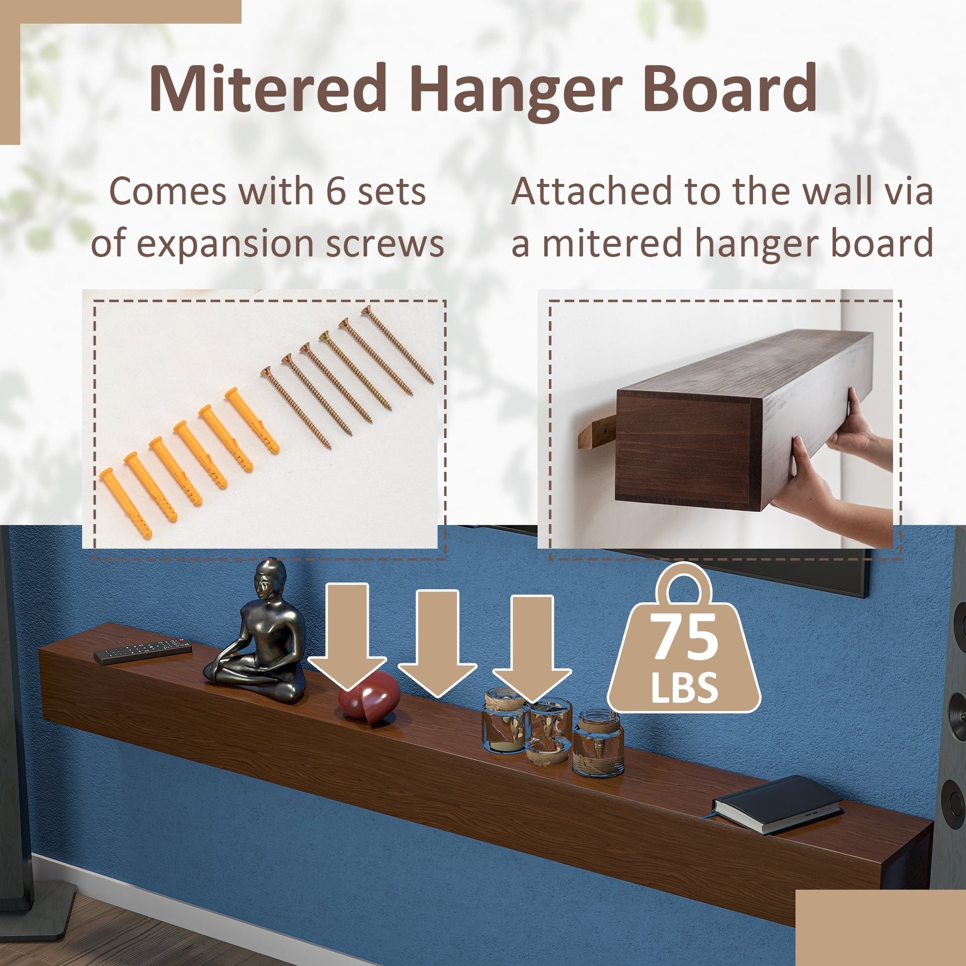 - LIGHTWEIGHT & STURDY - We use a hollow structure design to keep our fireplace mantel relatively lightweight and simple to hang; Measuring 60 x 8 x 6 inches, the floating shelf provides ample space to display your books, awards, photos and other treasures; It can support up to 75 pounds of weight