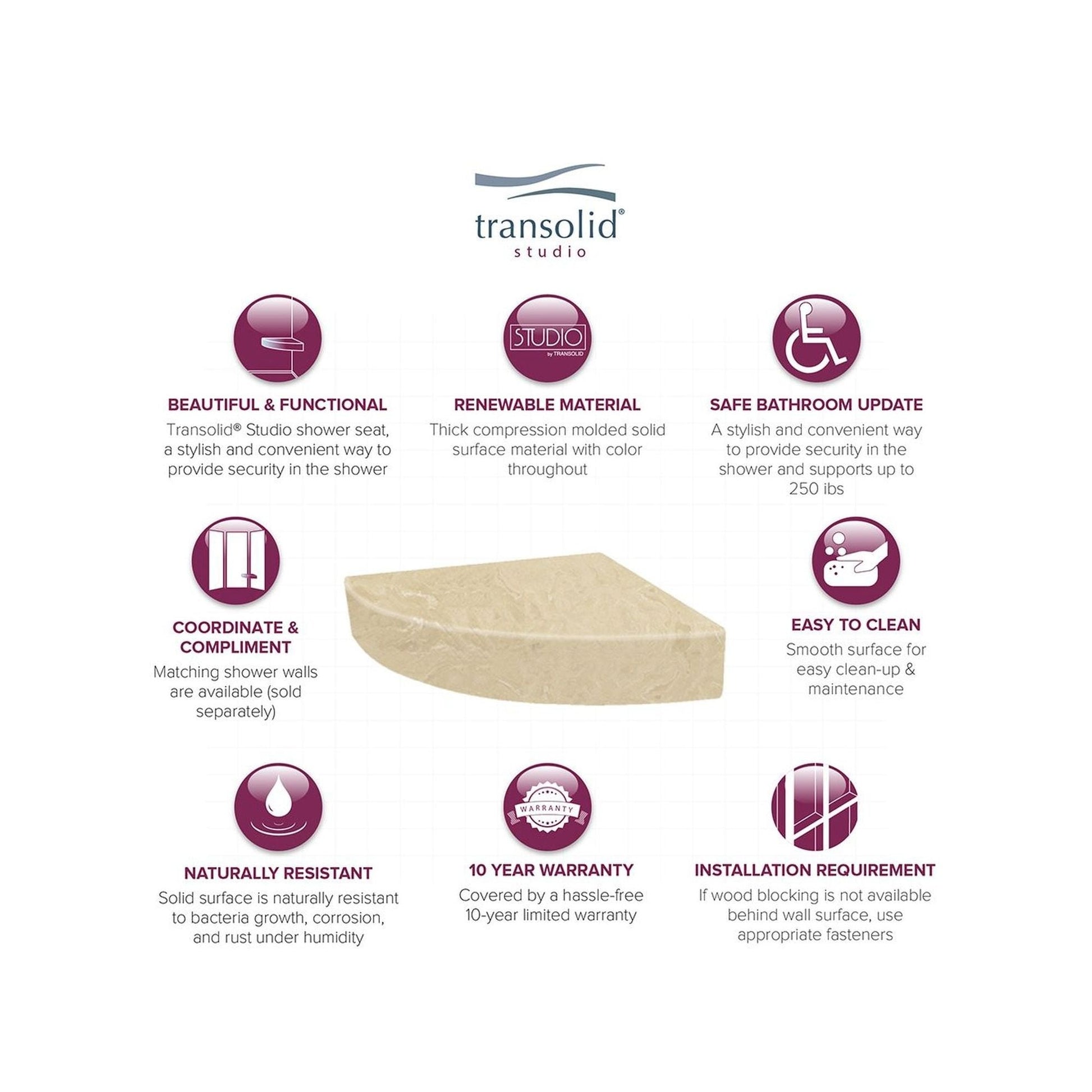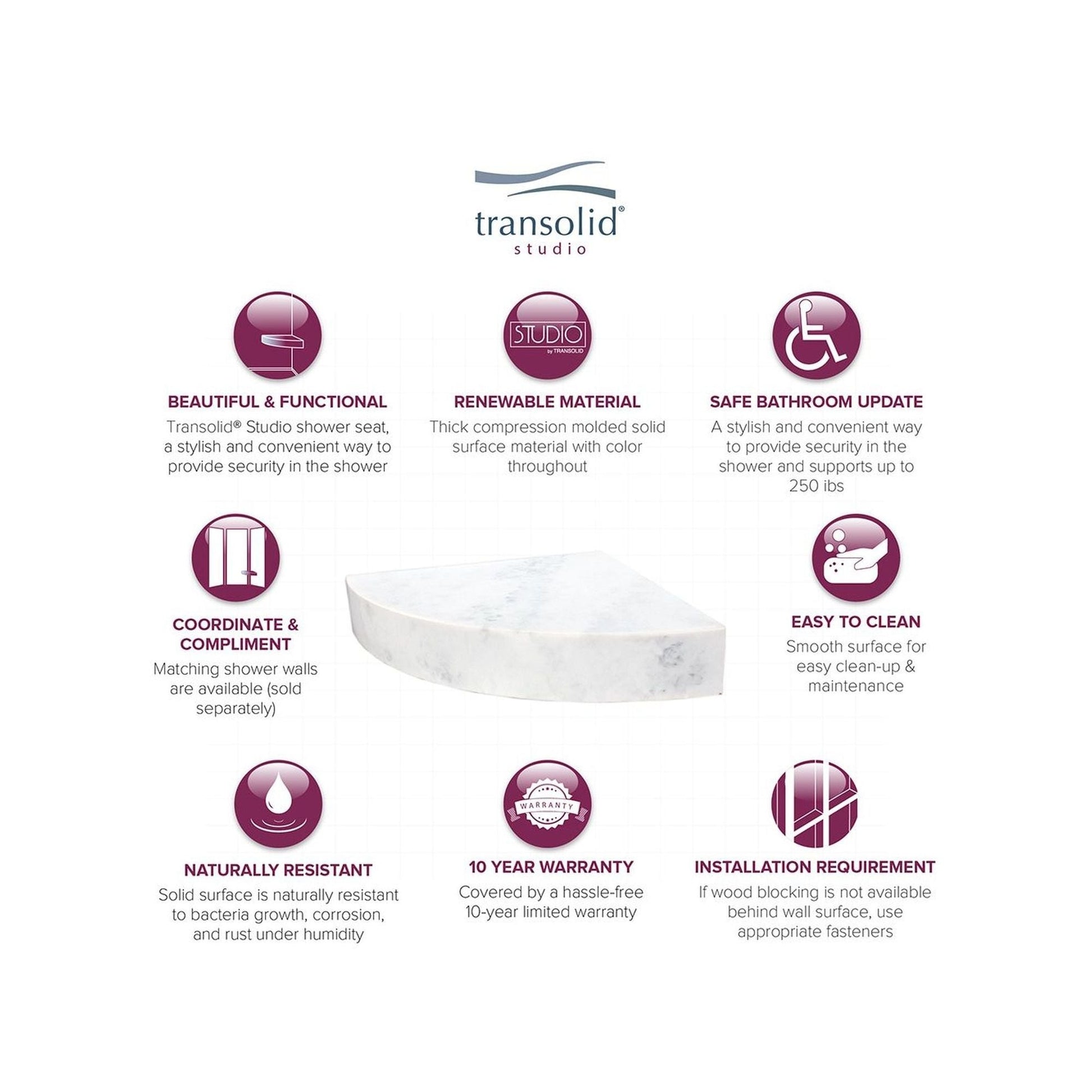 Transolid Studio 14-In X 14-In Solid Surface Wall-Mount Corner Shower Seat - 14.5 x 14.25 x 3